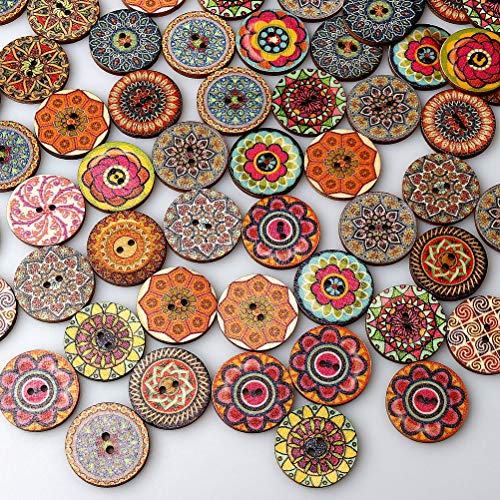 100 Pcs Mixed Color Wood Buttons, EUBags 1 Inch Natural Round Shapes Retro Buttons, Vintage Buttons with 2 Holes for DIY Sewing Crafts (1inch)