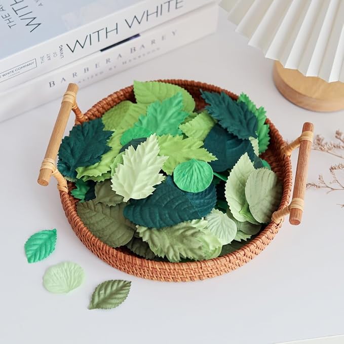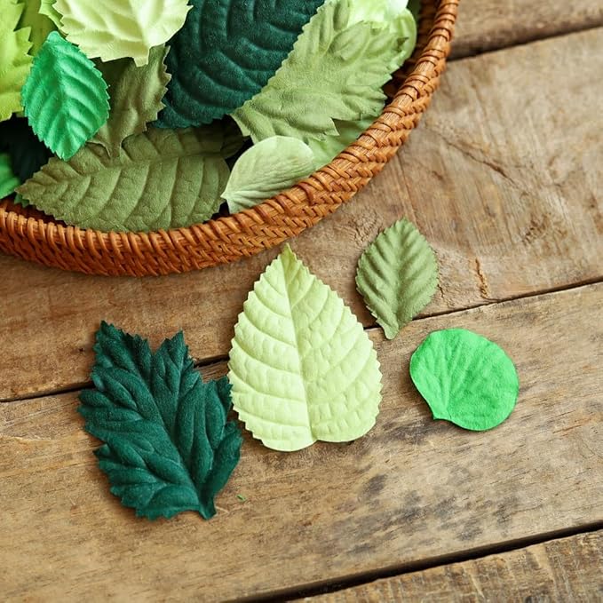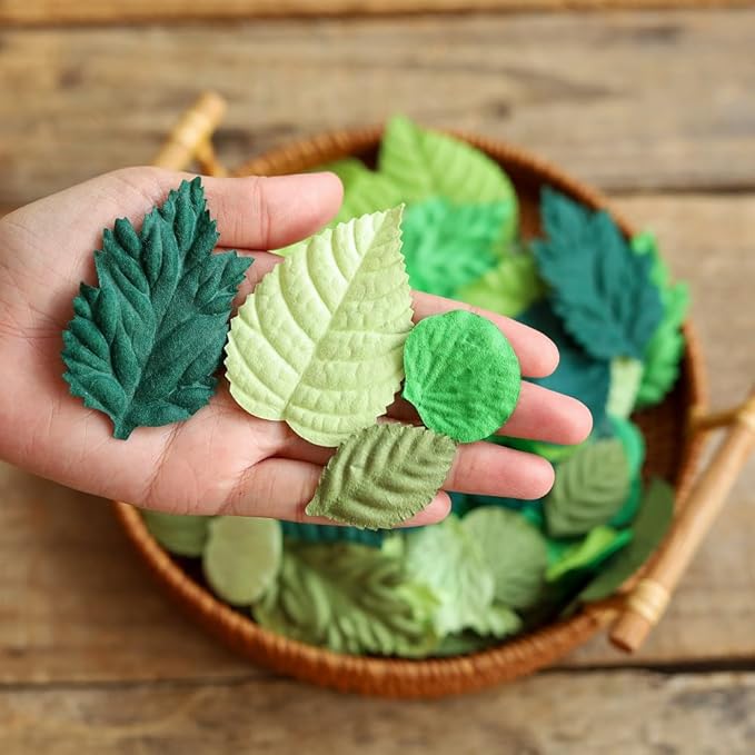 100 pcs Mlberry Paper Leaves Rose Leaves Sunflowers Leaves Hydrangea Leaves Lotus Leaves Scrapbooking Wedding DIY Craft Supplies Card (Mixed Green Leaves..)