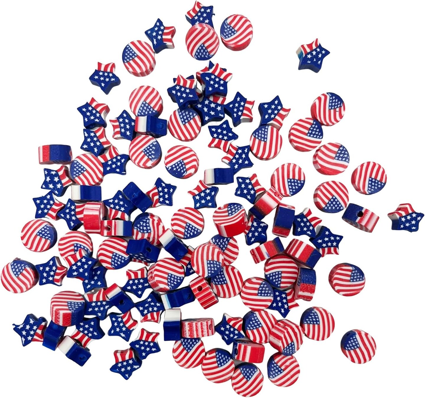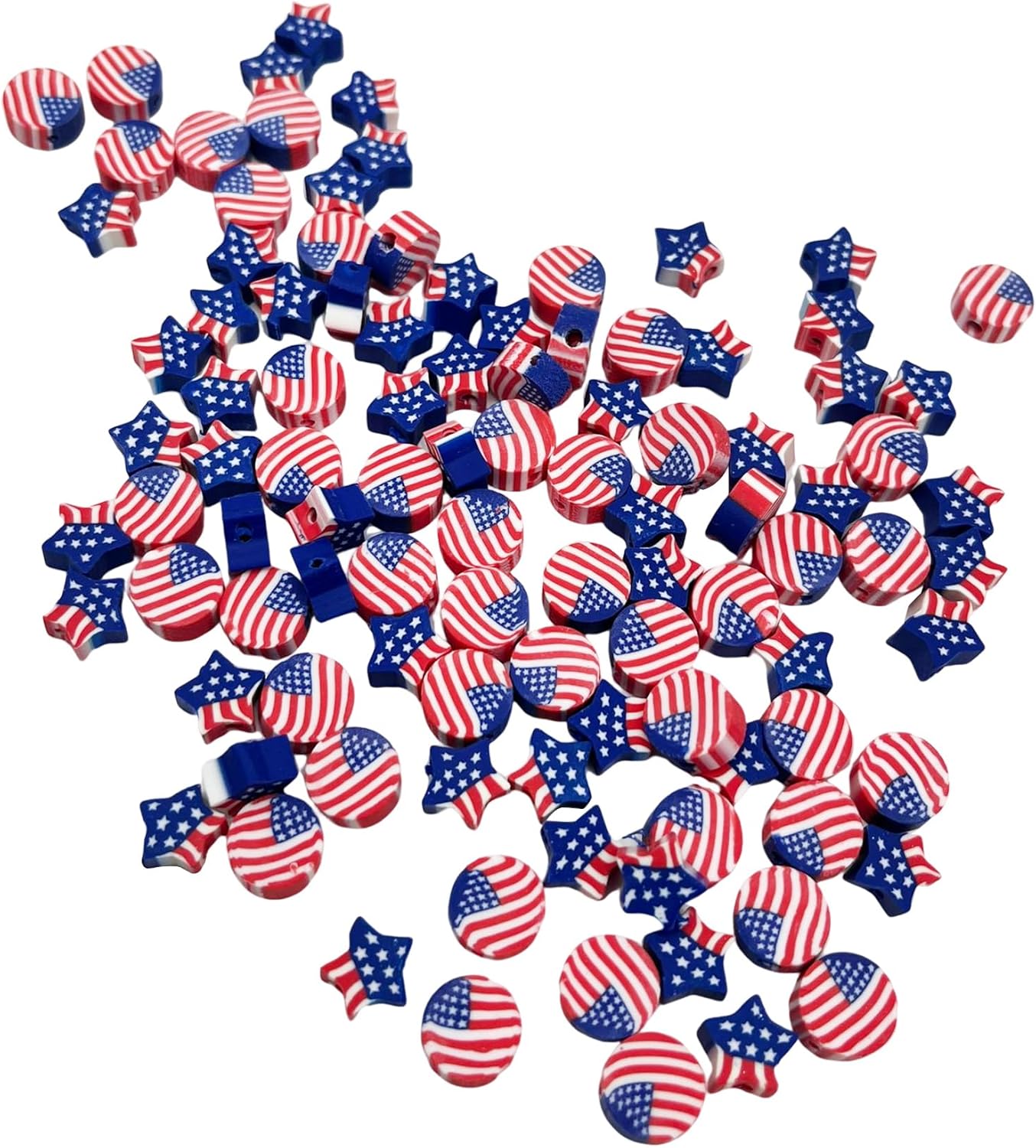 100 Pcs Polymer Clay Beads Mixed Heishi Spacer Beads (American Flag)