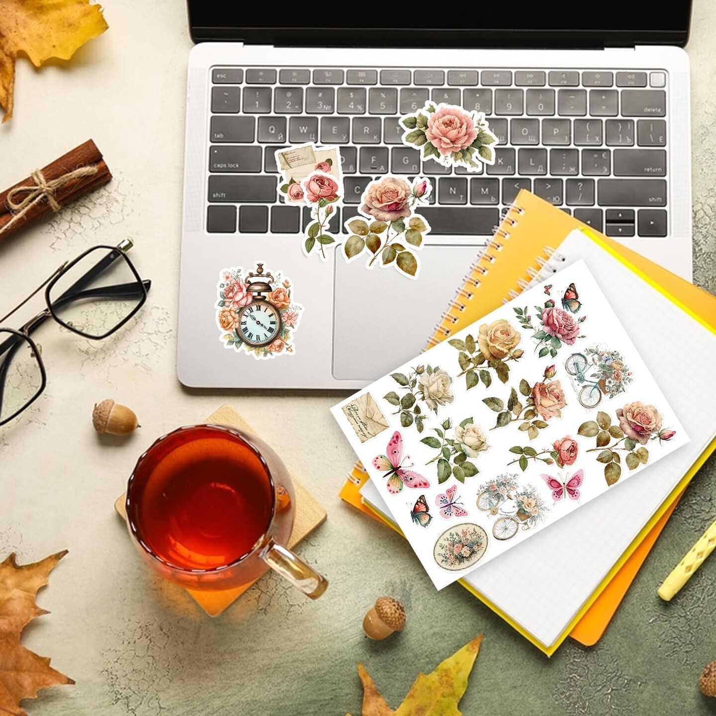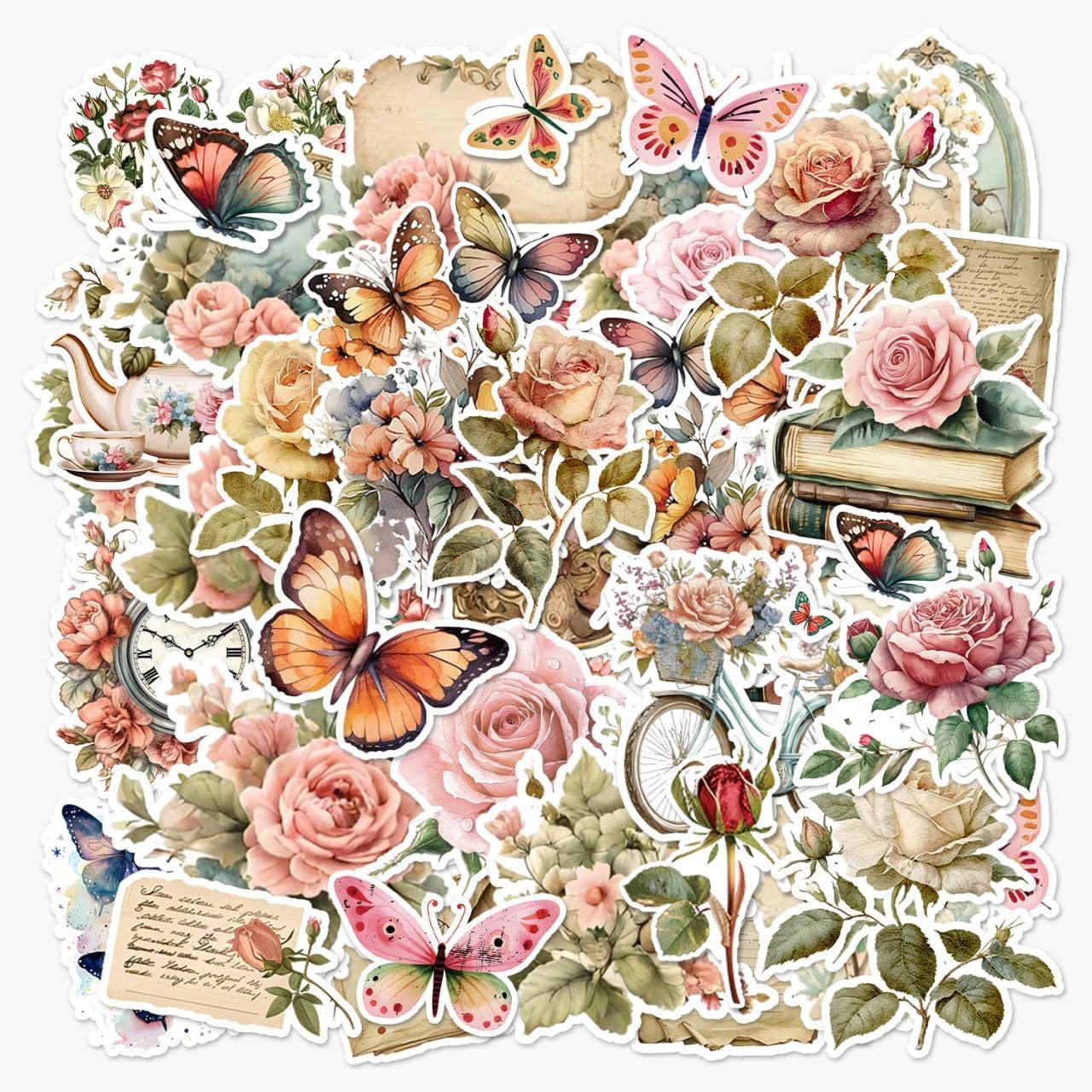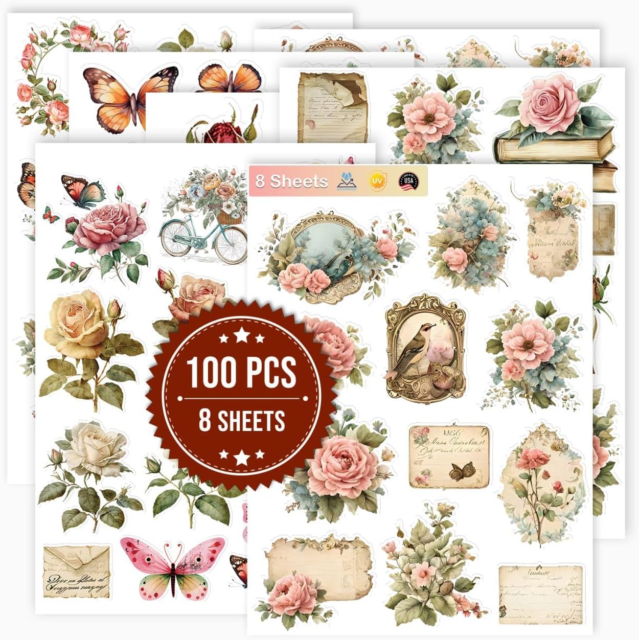 100 Pcs Scrapbook Vintage Stickers (8 Sheet)