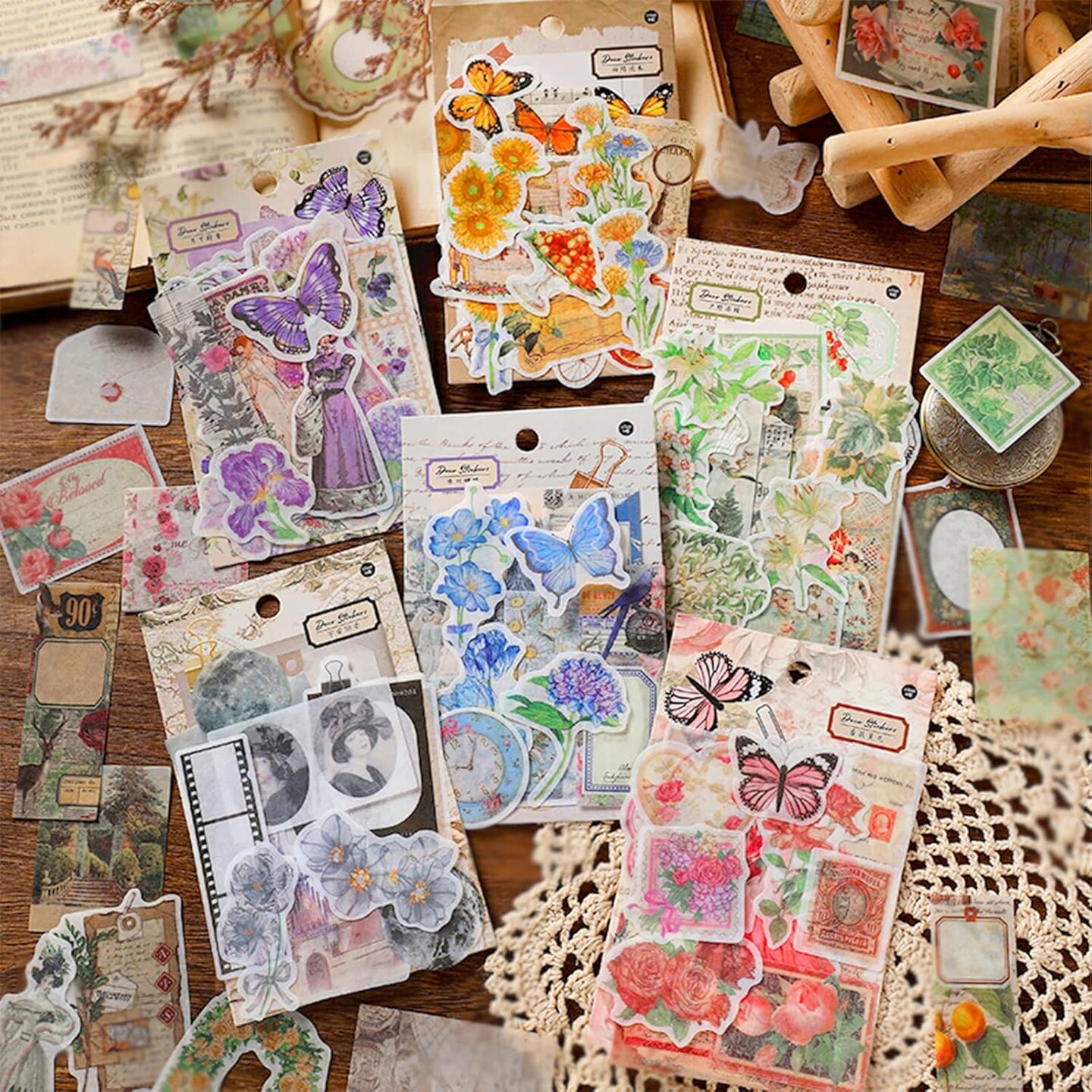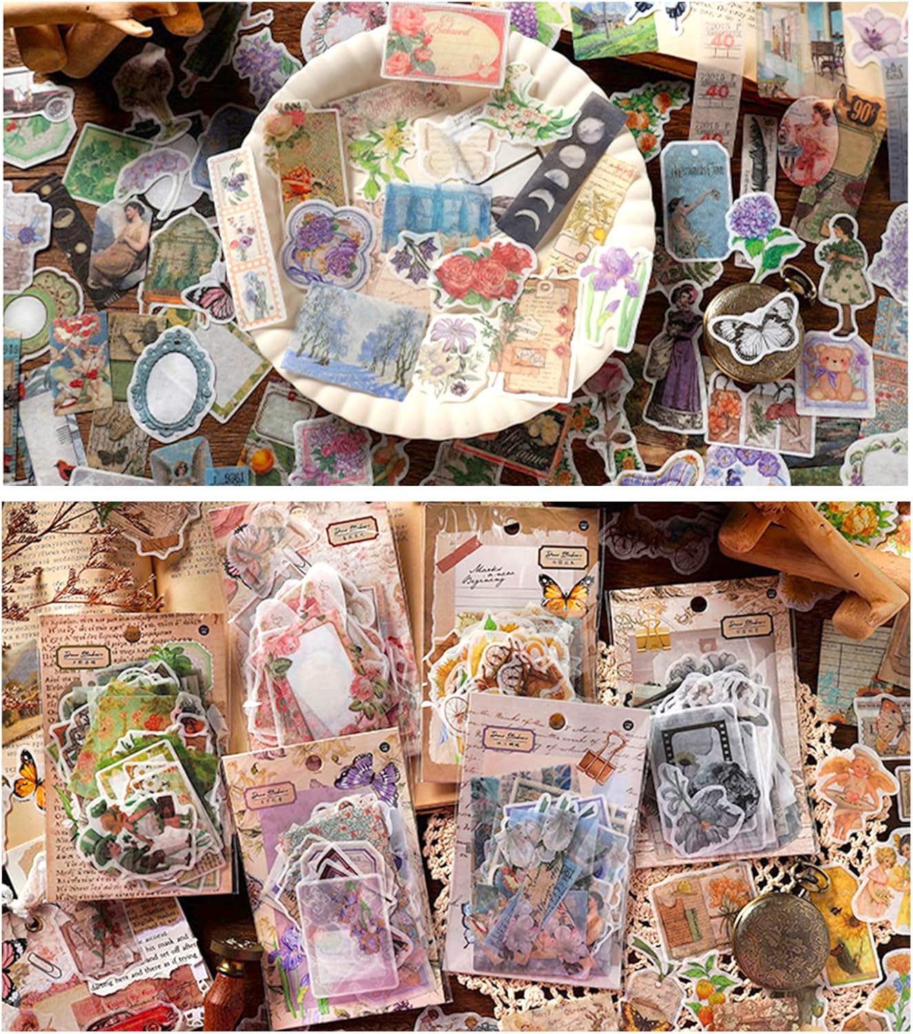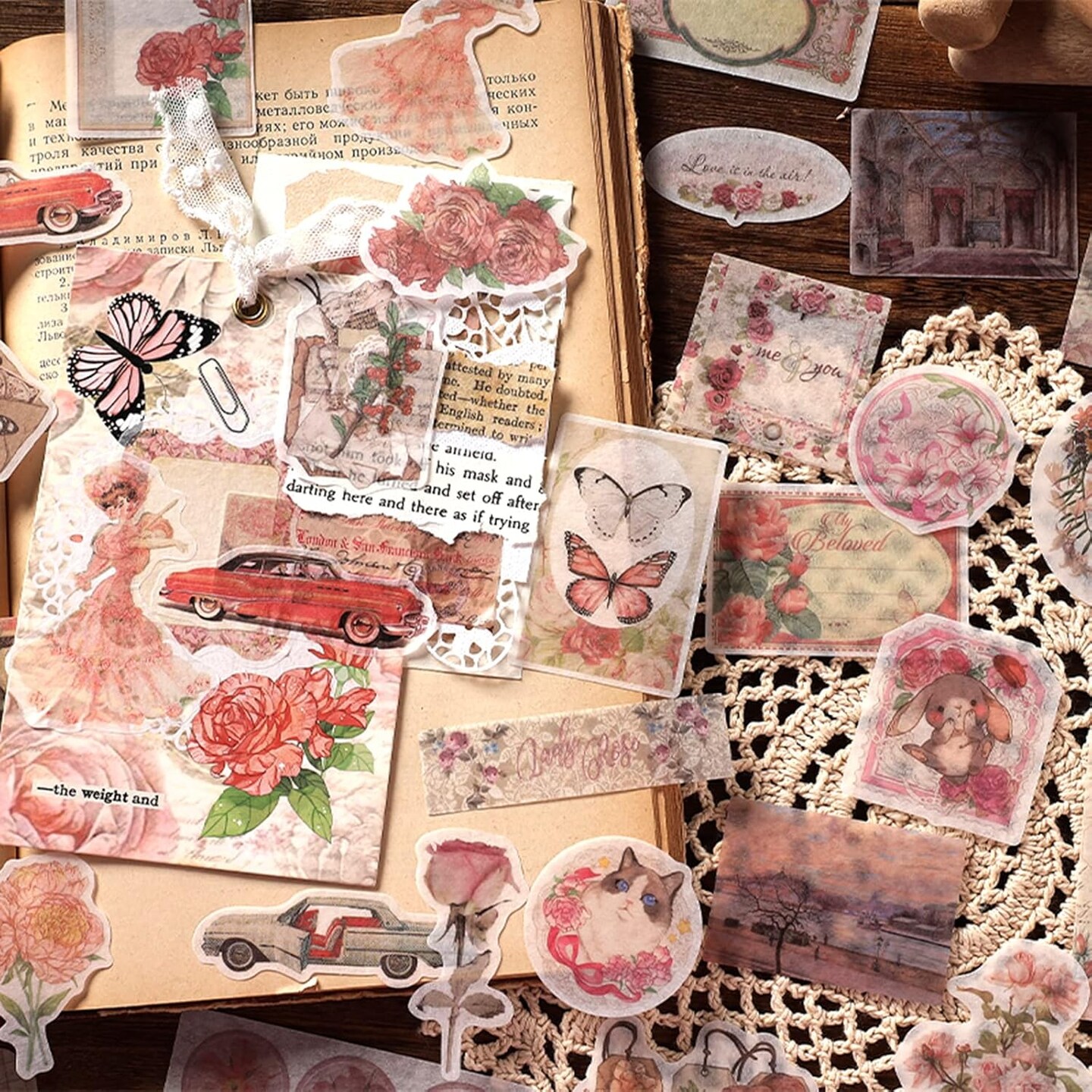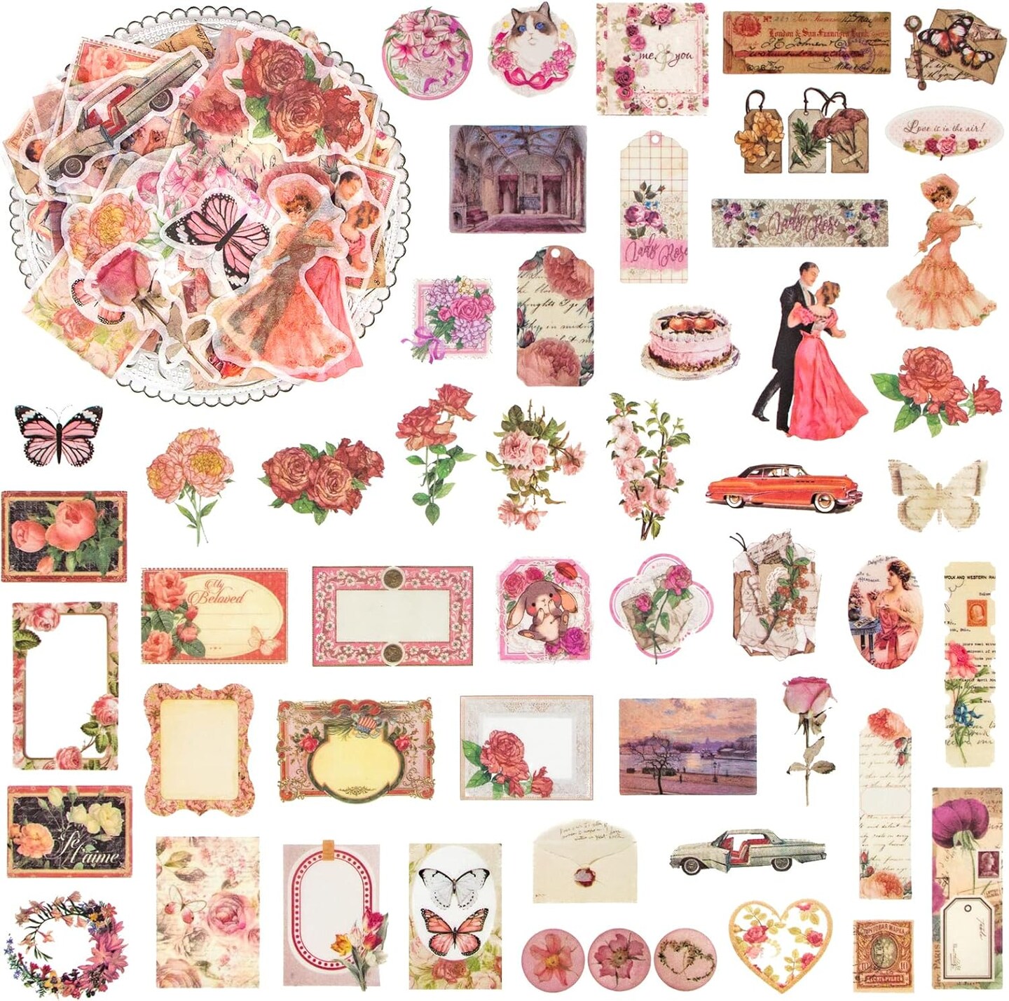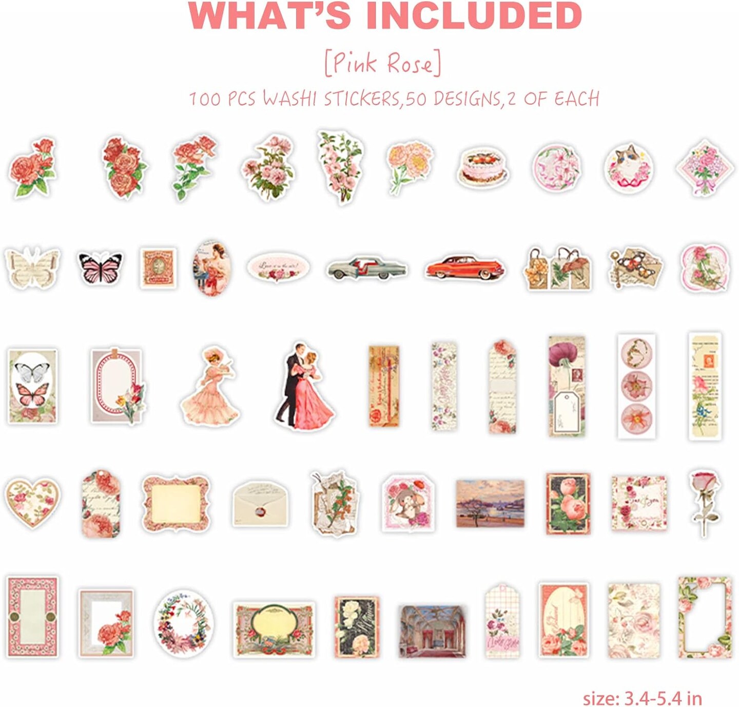 100 Pcs Vintage Scrapbook Washi Stickers (Pink Rose)