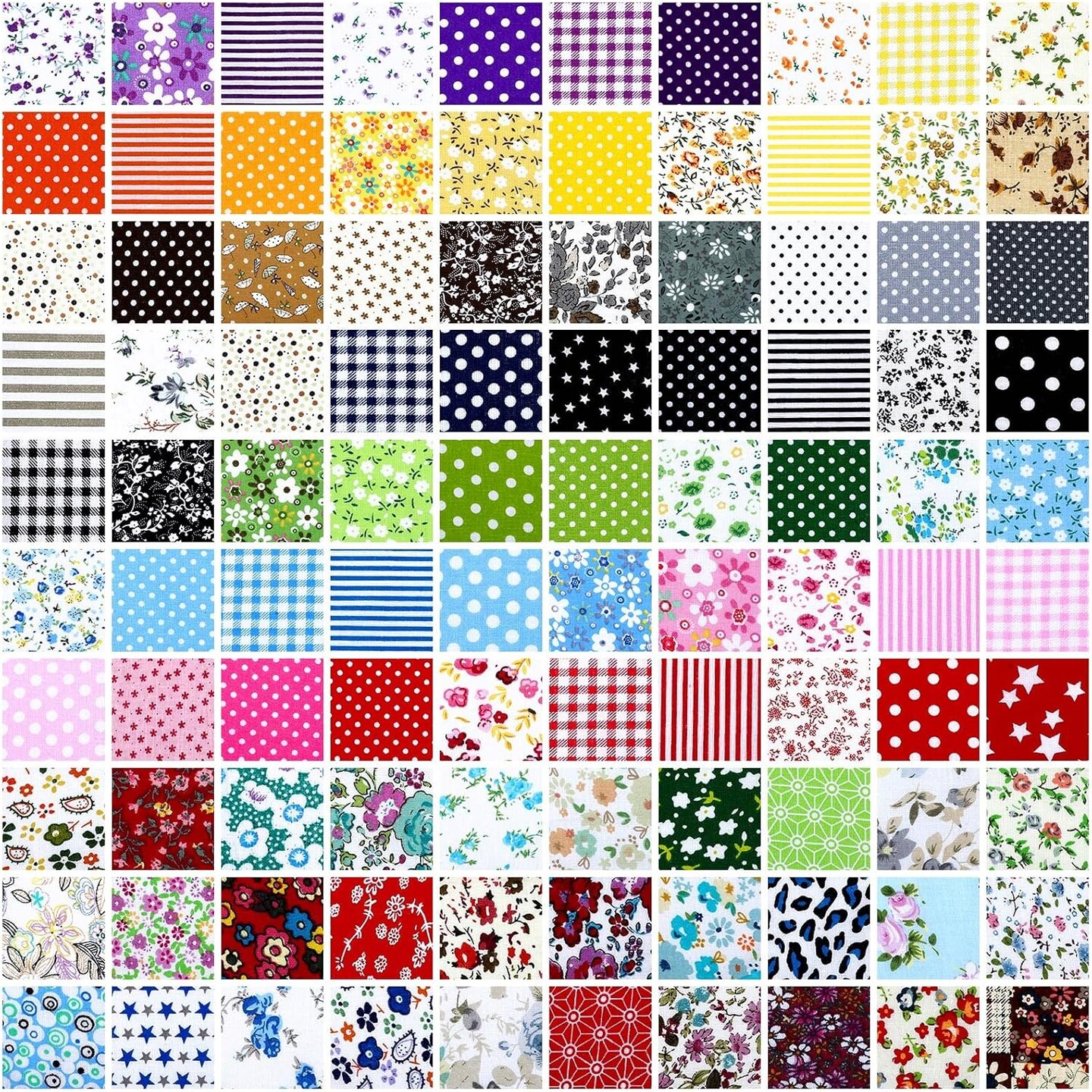 100 Pieces 10 x 10 Inches Cotton Fabric Squares Patchwork Quilting Fabric Bundles (Floral)