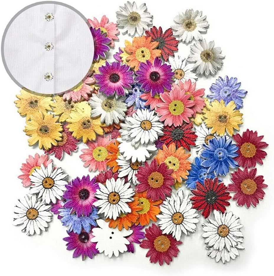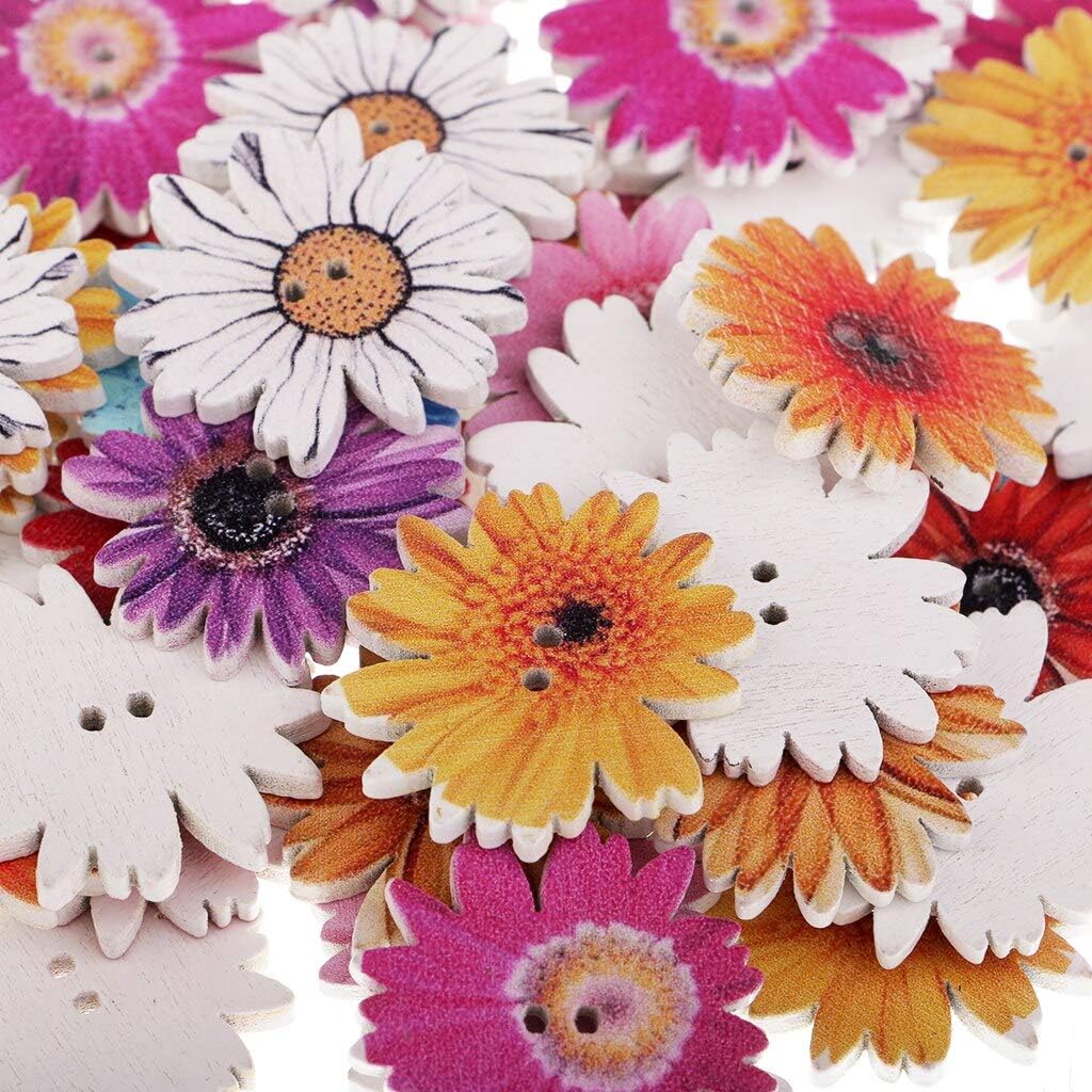 100 Pieces 1inch Flower Shaped Wood Buttons Daisy Sunflower 2 Holes