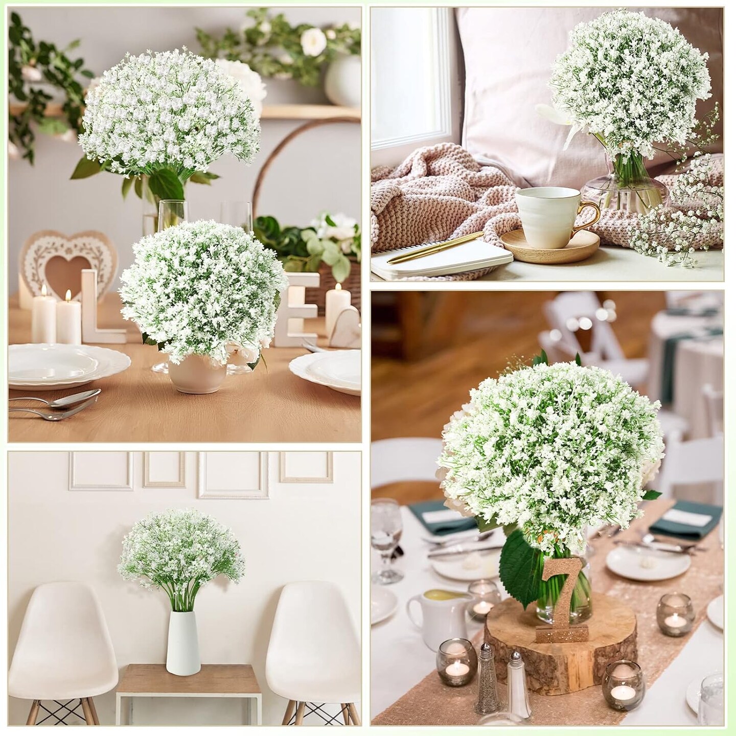 100 Pieces Artificial Flowers Plastic Baby Breath Flowers Faux Gypsophila DIY Floral Bouquets Arrangement Baby Breath Wedding Party Decoration for Party Home Office Garden Decor (White)