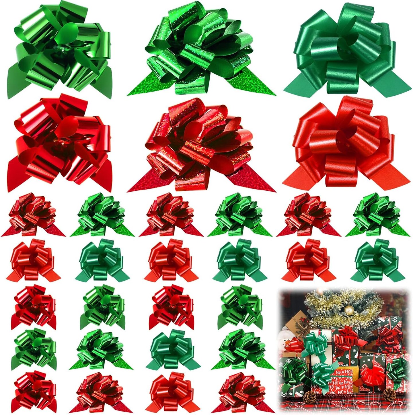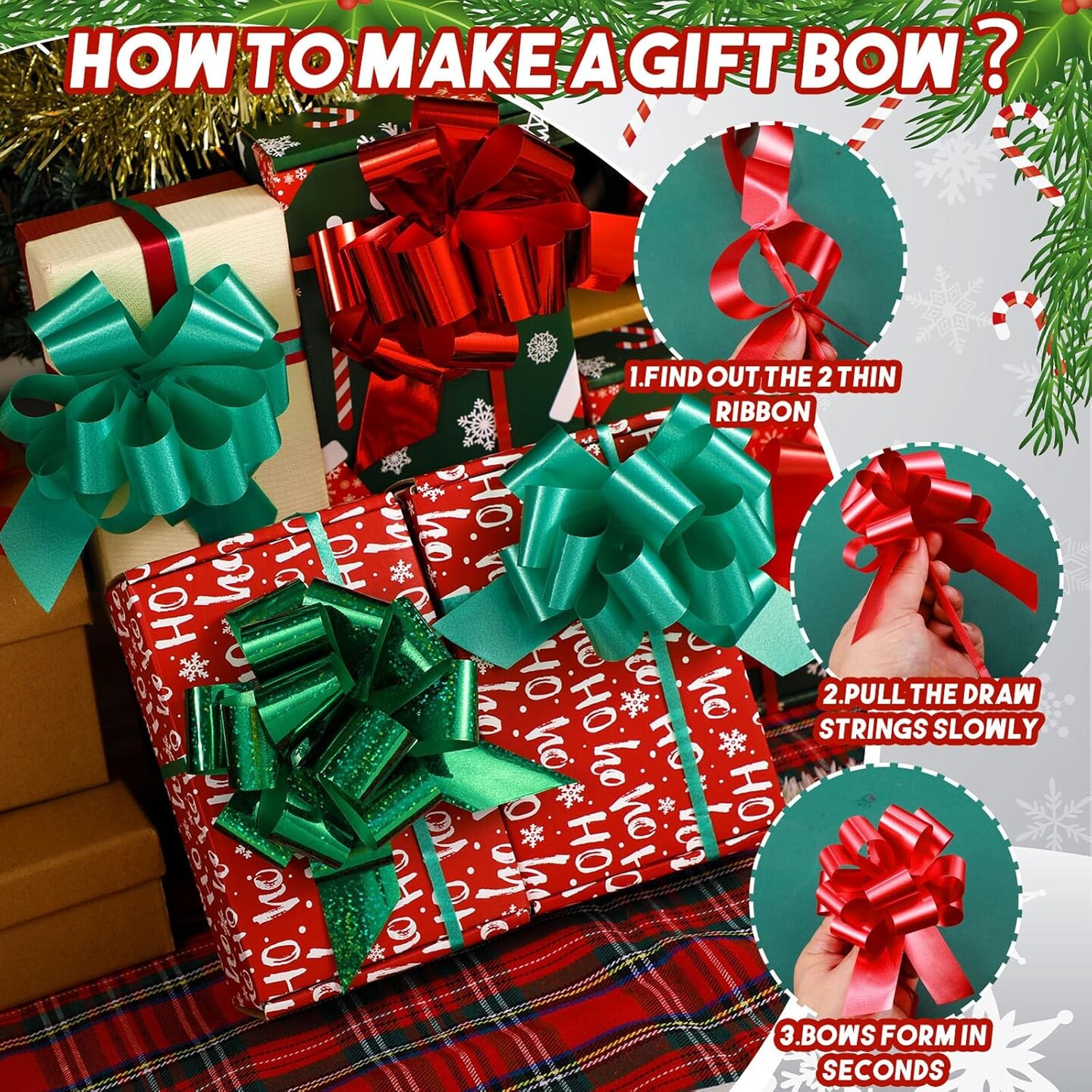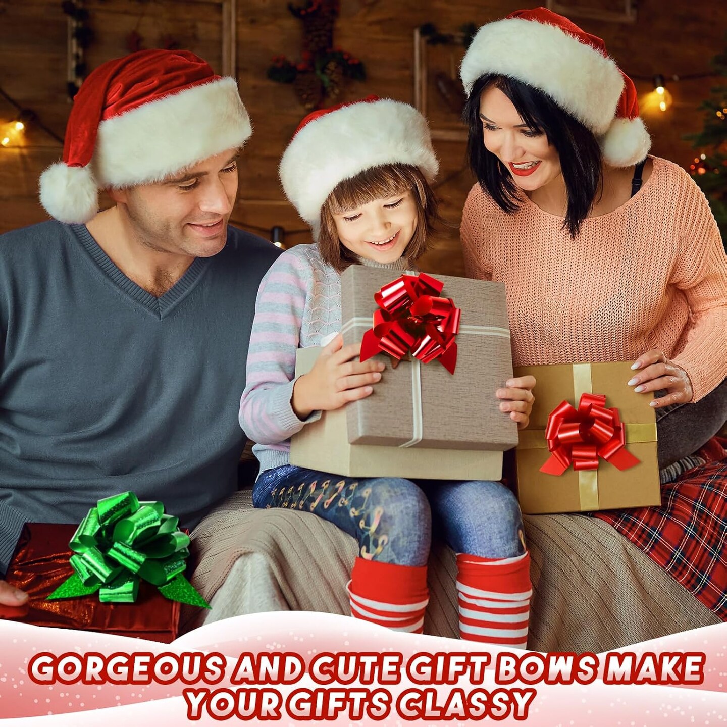 100 Pieces Christmas Wrap Pull Bows 5 Inch Gift Bows with Ribbon Wrapping Accessory Present Christmas Wrapping Bows for Holiday Baskets Box Decoration (Red, Green)