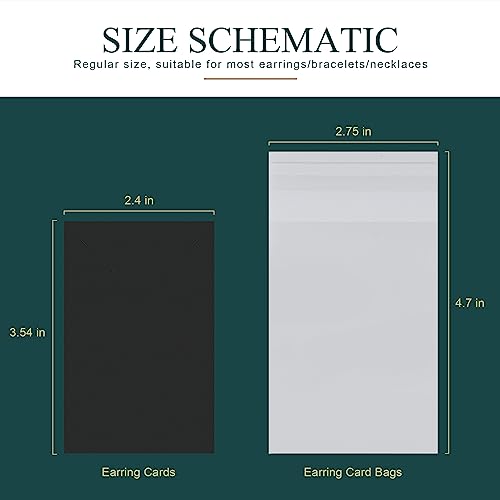 100 Pieces Earring Cards, Set Jewelry Making Supplies Earring Holder Cards 200 Pcs Earring Backs and 100 Jewelry Packaging for Earrings Necklace Jewelry Display, Jewelry Bags 3.5x2.4 Inches (Black)
