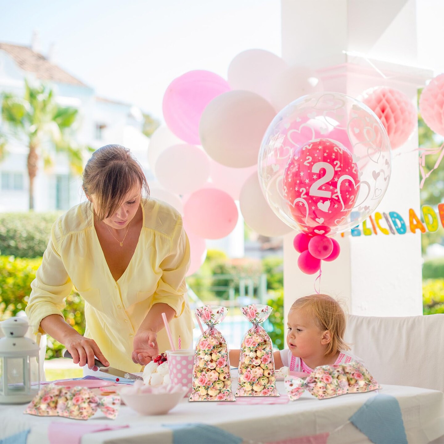 100 Pieces Eucalyptus Party Cellophane Treat Bag Floral Candy Bags for Baby Shower Wedding Bridal Shower Supplies Favors Decorations Birthday Theme Greenery Floral Graduation Decor (Flowers)