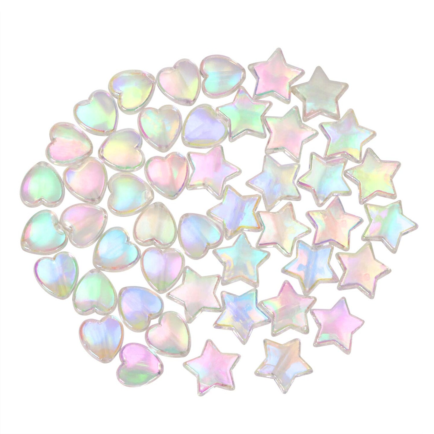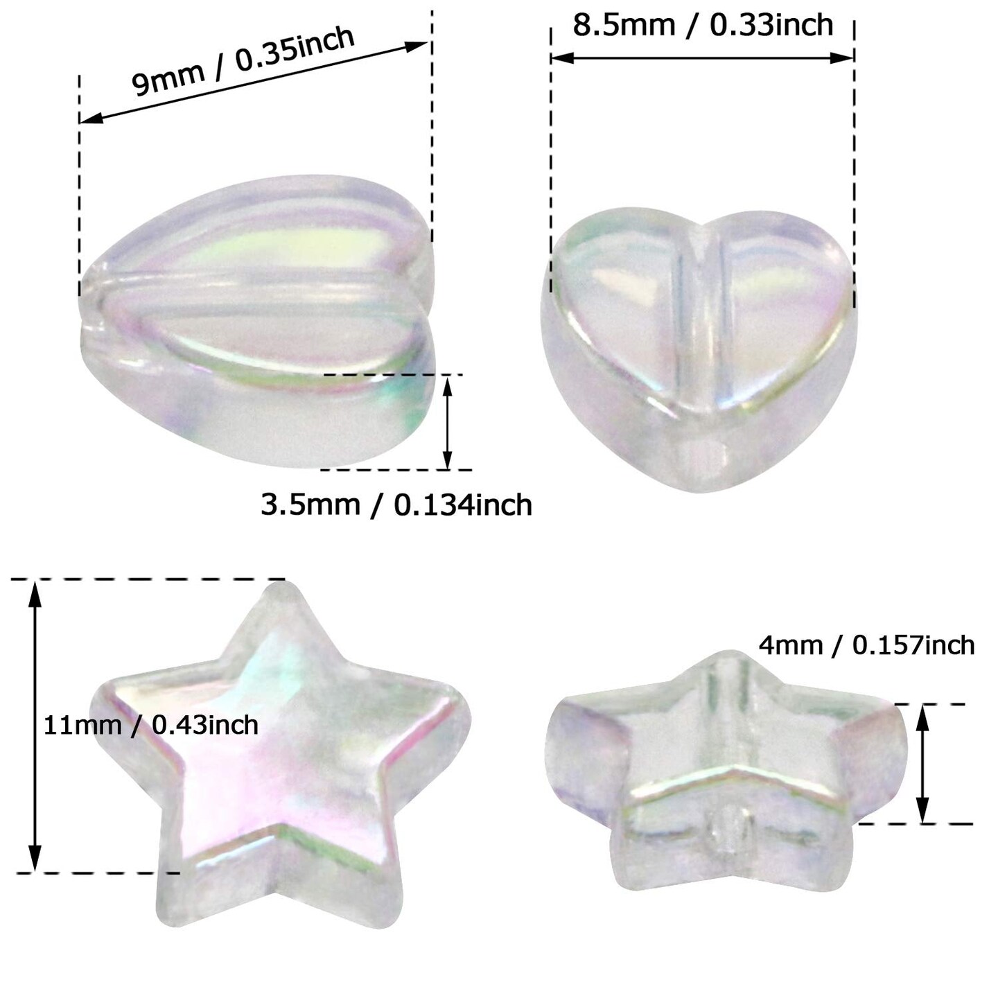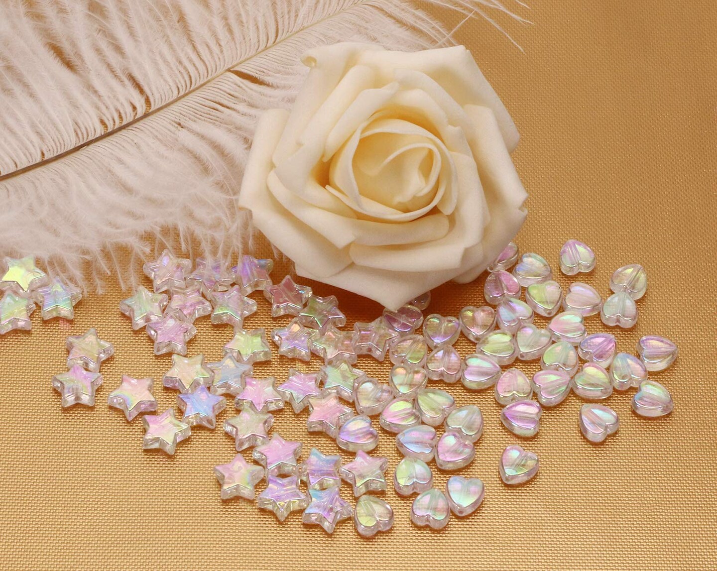 100 Pieces Mini Acrylic Beads 9mm Heart Charms and 11mm Star Beads for Jewelry Making Bracelets Necklaces Earrings Key Chains Accessories DIY Crafts Valentine Christmas Birthday Gifts (White)