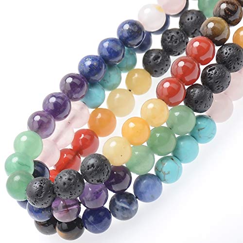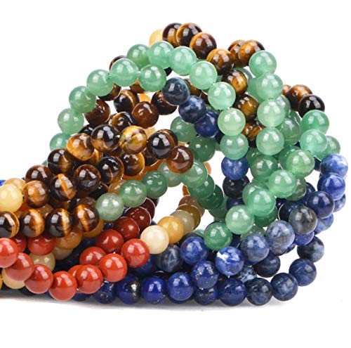 100 Pieces Natural Crystal Beads Stone Gemstone Round Loose Energy Healing Beads with Free Crystal Stretch Cord for Jewelry Making (Mixed Colors A, 8MM)