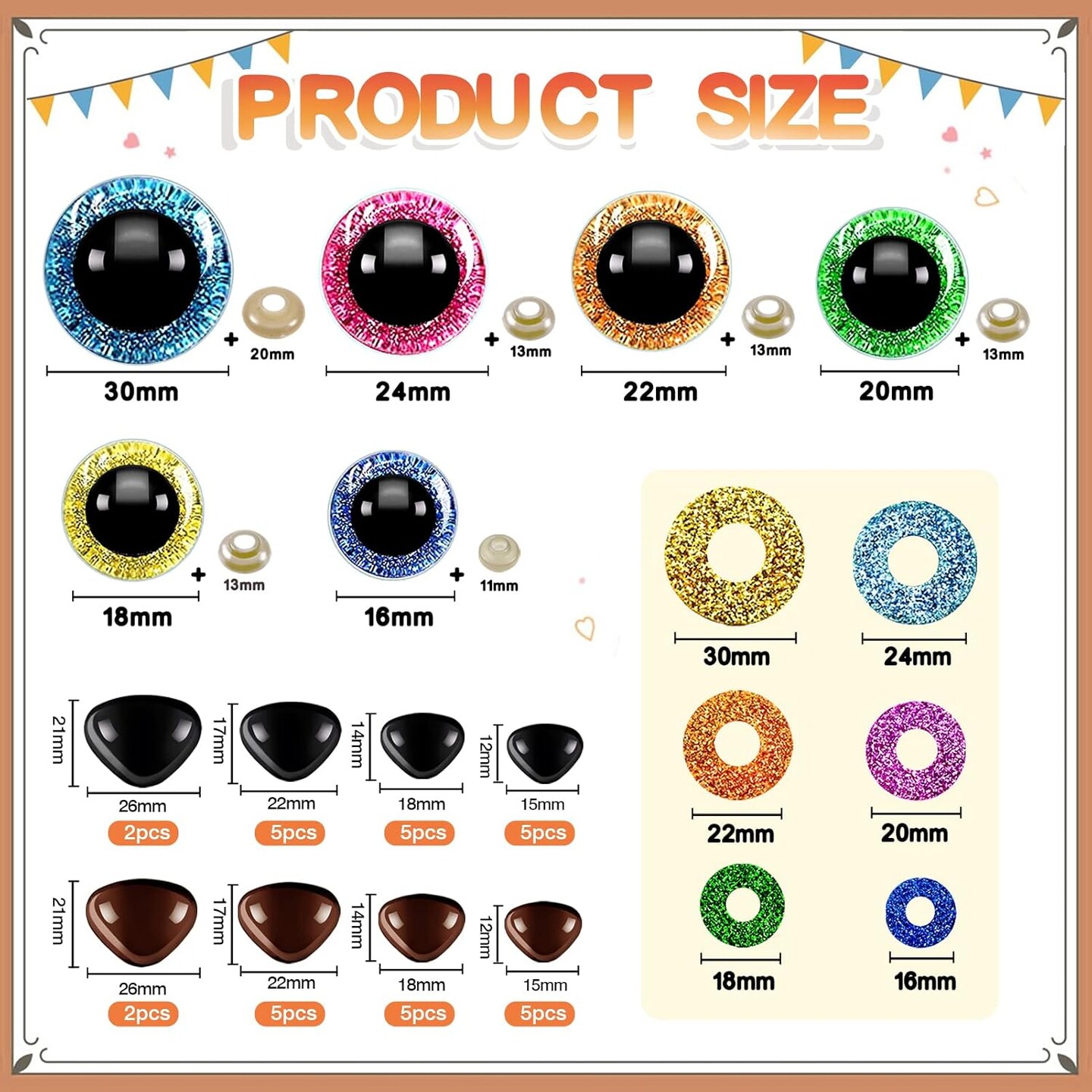 100 Sets Large Glitter Safety Eyes & Noses for Amigurumis – Plastic Craft Eyes & Noses with Washers for Crochet Dolls and Stuffed Animals