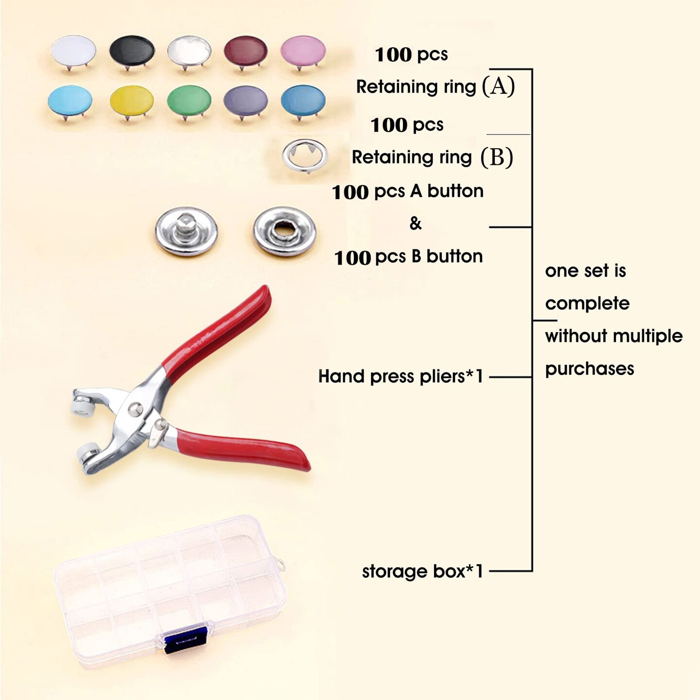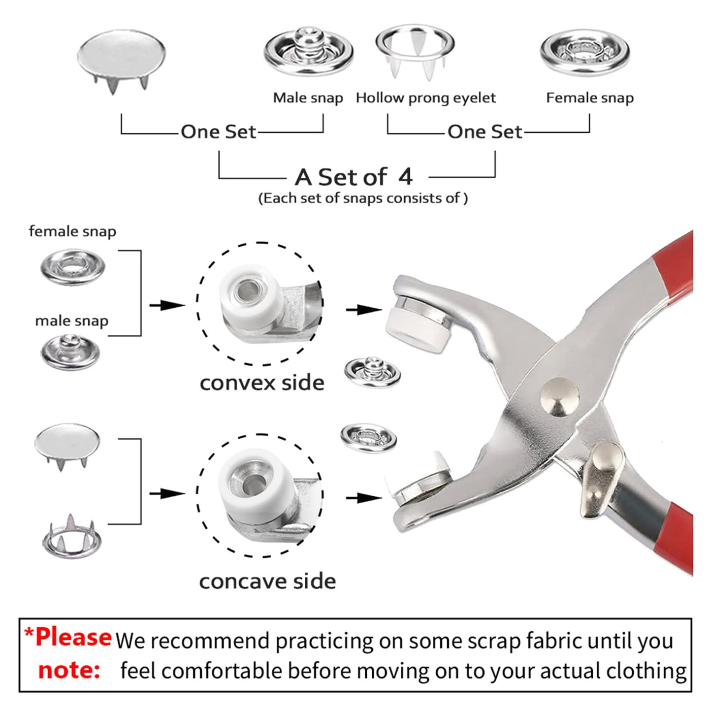 100 Sets Metal Snaps Buttons with Fastener Pliers Press Tool Kit Perfect for DIY Crafts Clothes Hats and Sewing, Snap Button Fasteners Kit for Clothing Sewing (9.5mm / 400 PCS)