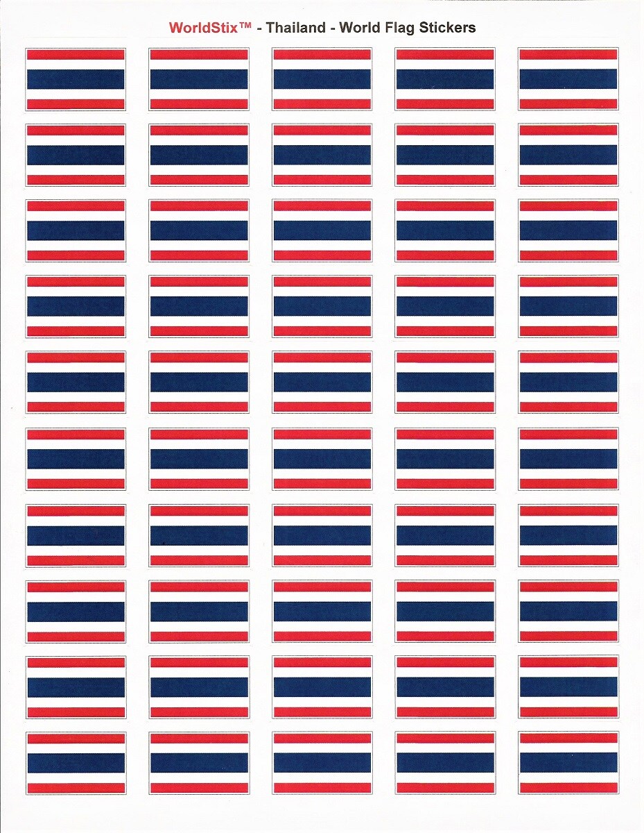 100 Thailand Flag 1.5 x 1 Inch Self Adhesive World Flag Scrapbook Stickers, Two Sheets of 50, 100 Country or Specialty Sticker Decal Flags Total