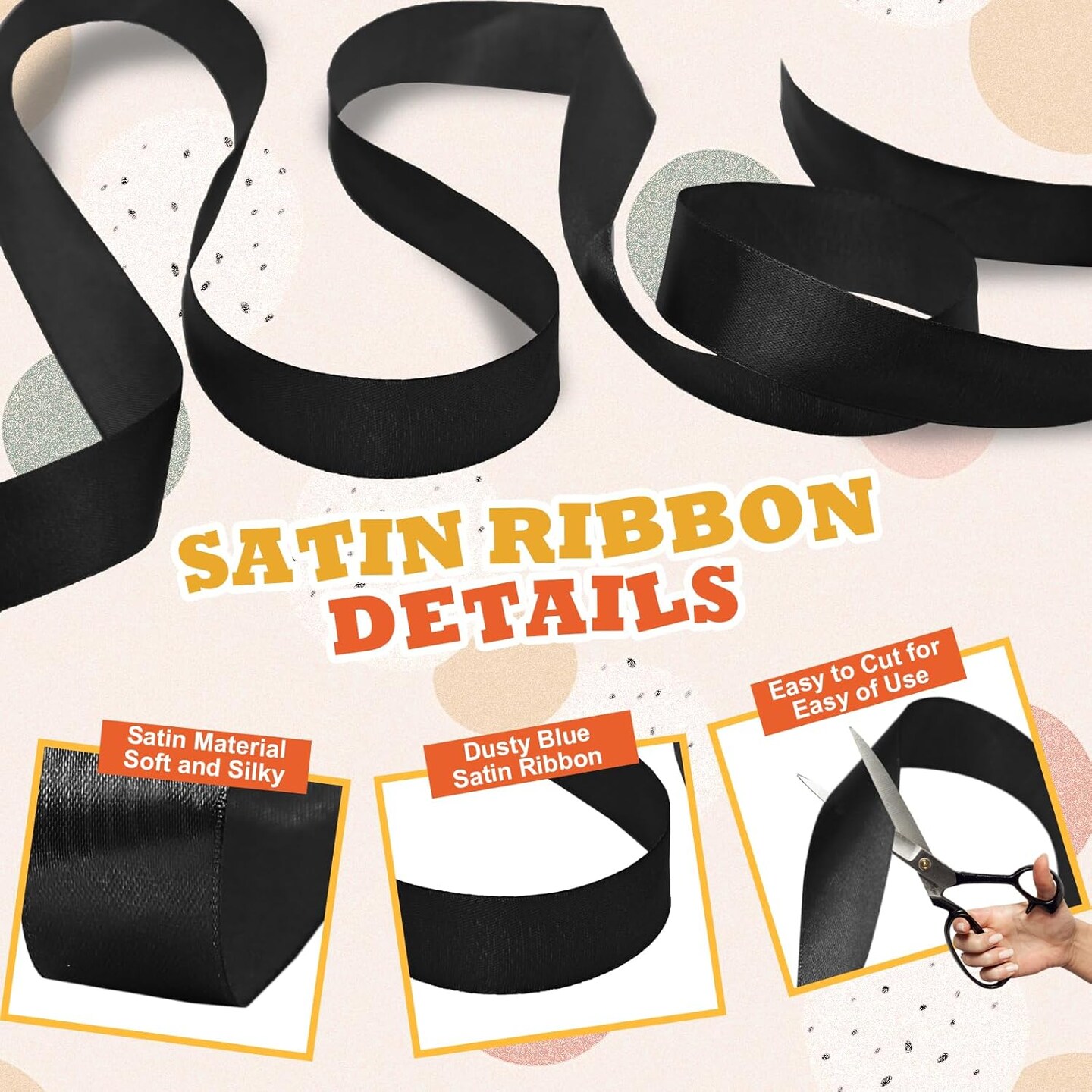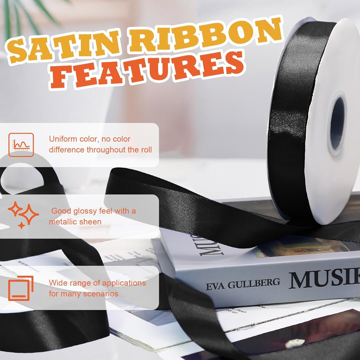 100 Yards 1 Inch Black Satin Ribbon, Solid Fabric Ribbon Roll