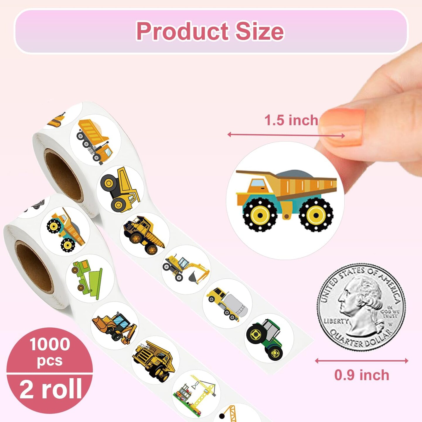 1000 PCS Cartoon Truck Car Stickers Roll for Kids- Round 1.5 Inch 16 Styles Cars Kindergarten Teacher Stickers Kids Birthday Party School Reward Giveaways