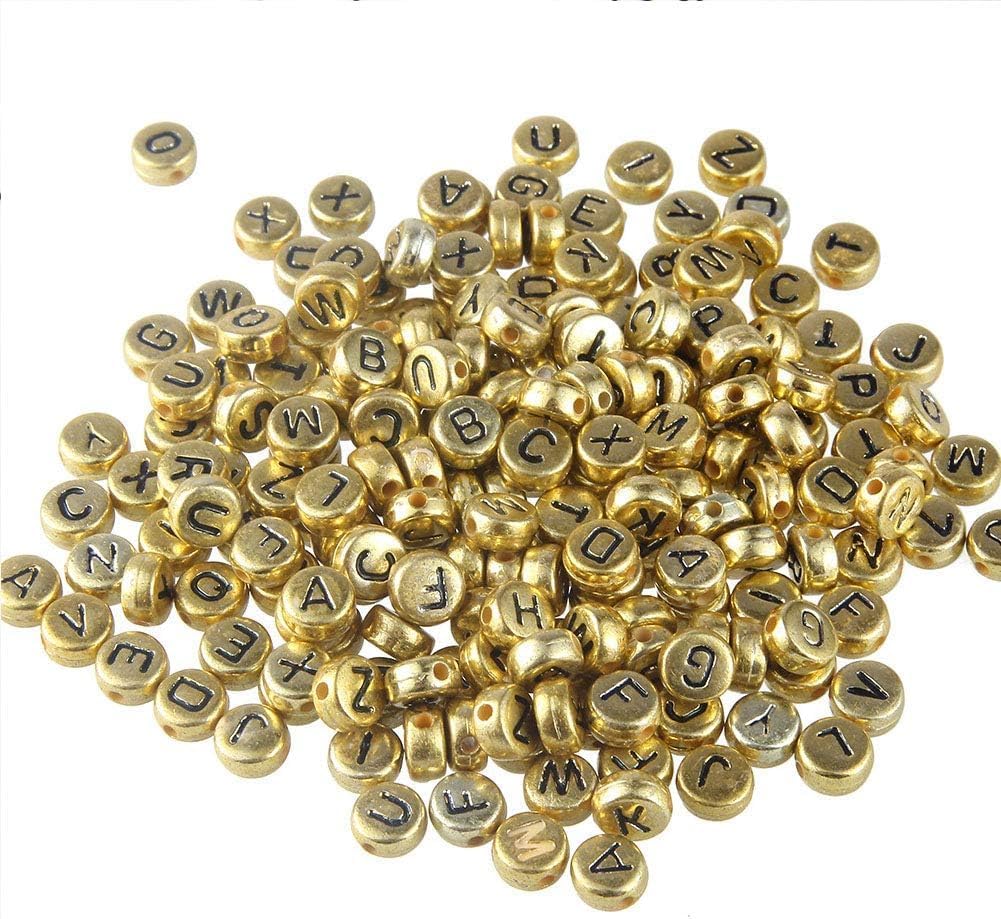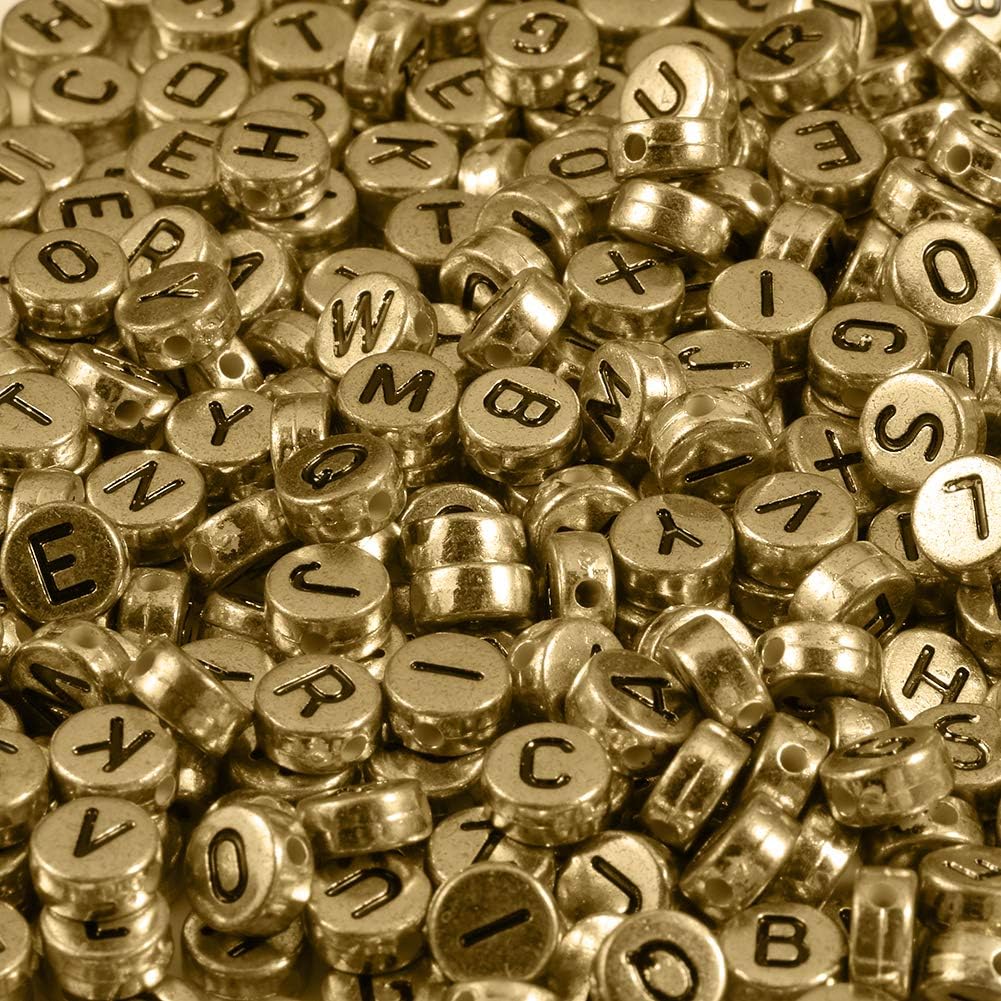 1000 PCS Gold Letter Beads – 4×7mm Black A–Z Alphabet Beads for Bracelets & Jewelry Making