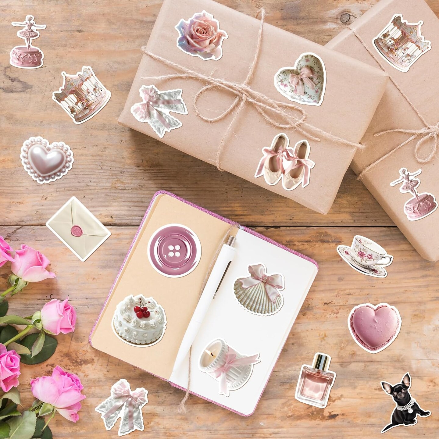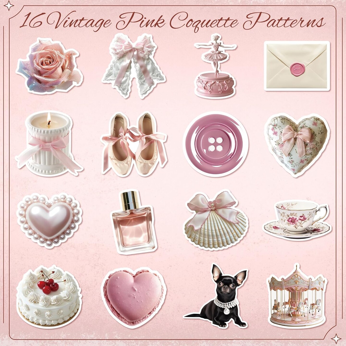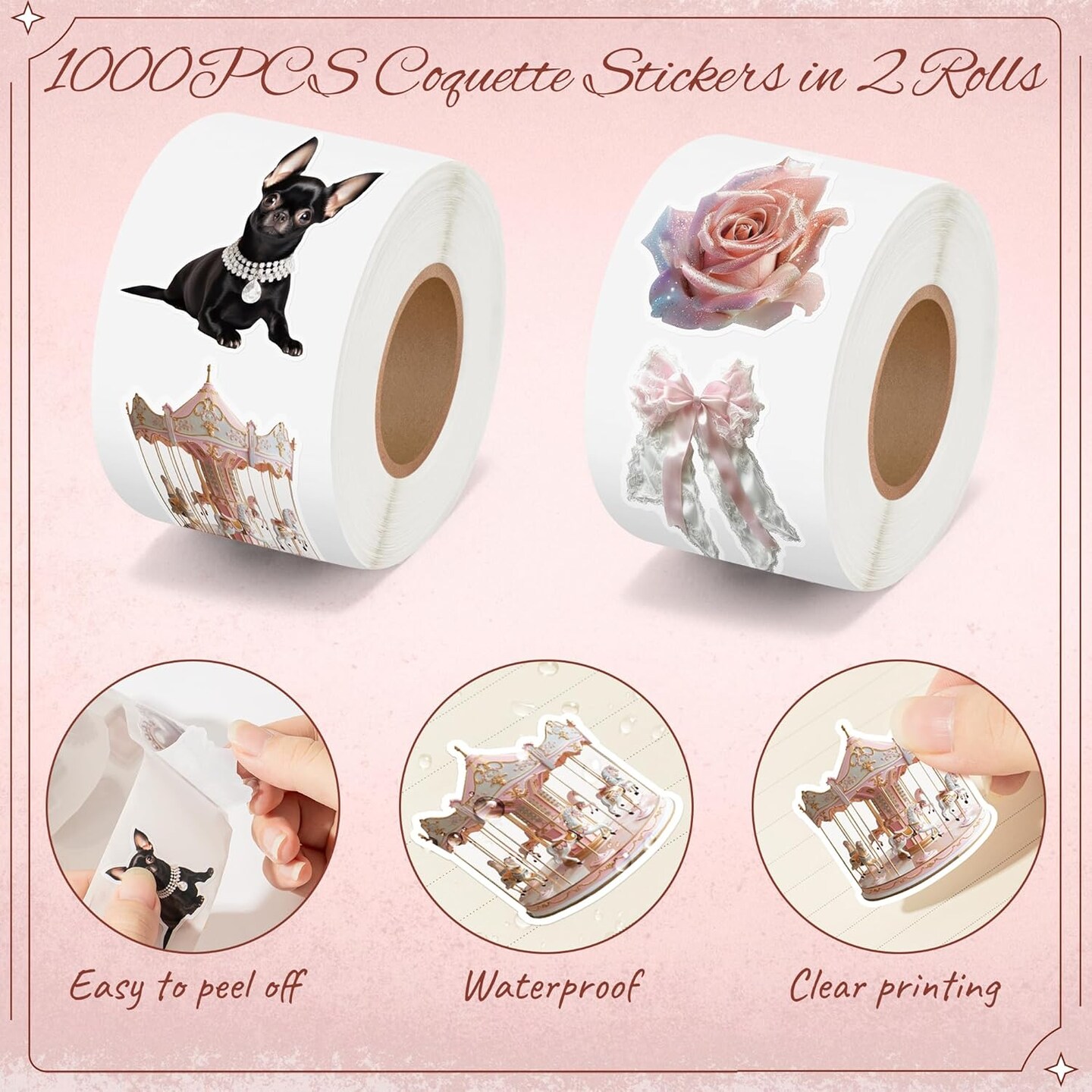 1000PCS Coquette Scrapbook Stickers (Pink)