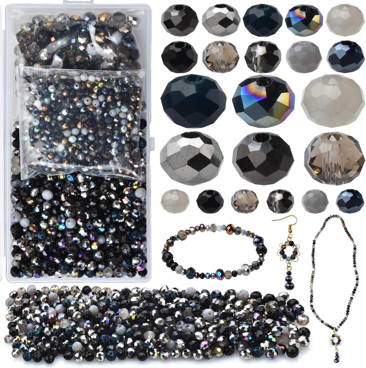 1000pcs Faceted Rondelle Beads,4/6/8mm Crystal Glass Beads for Jewelry Making Assorted 3 Sizes Spacer Loose Beads