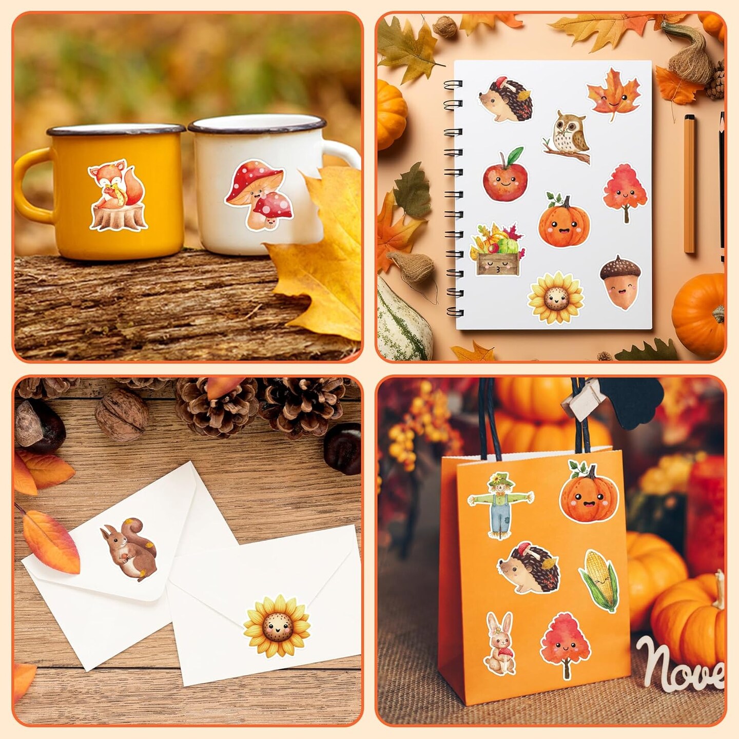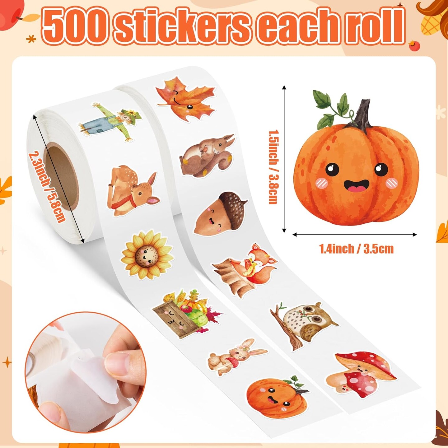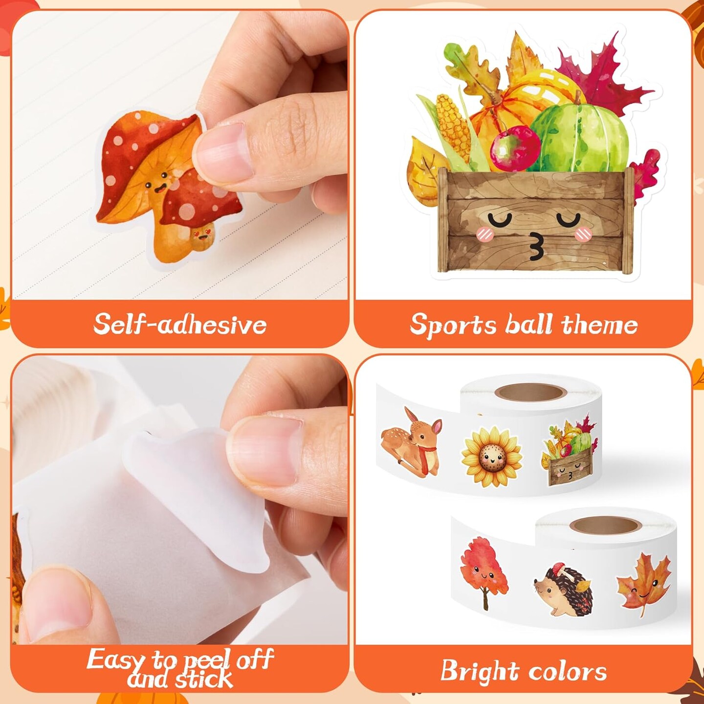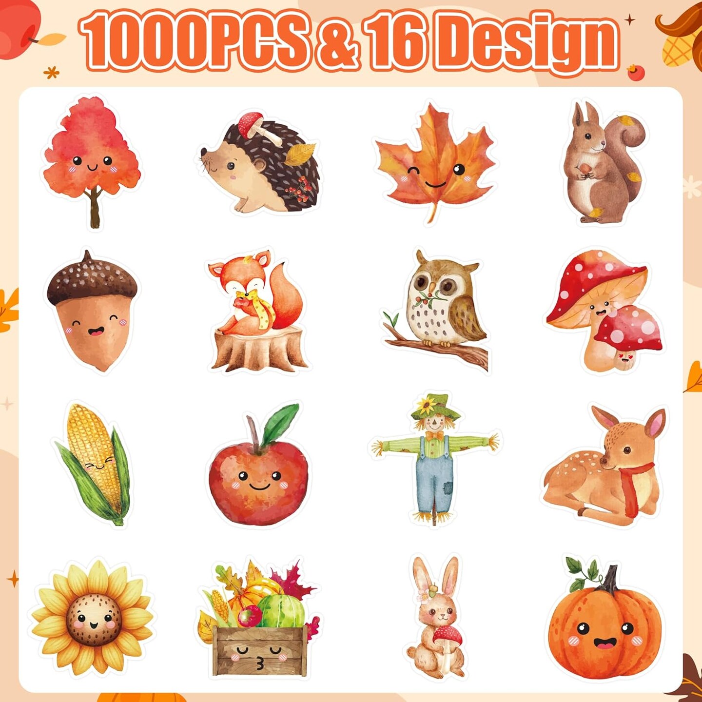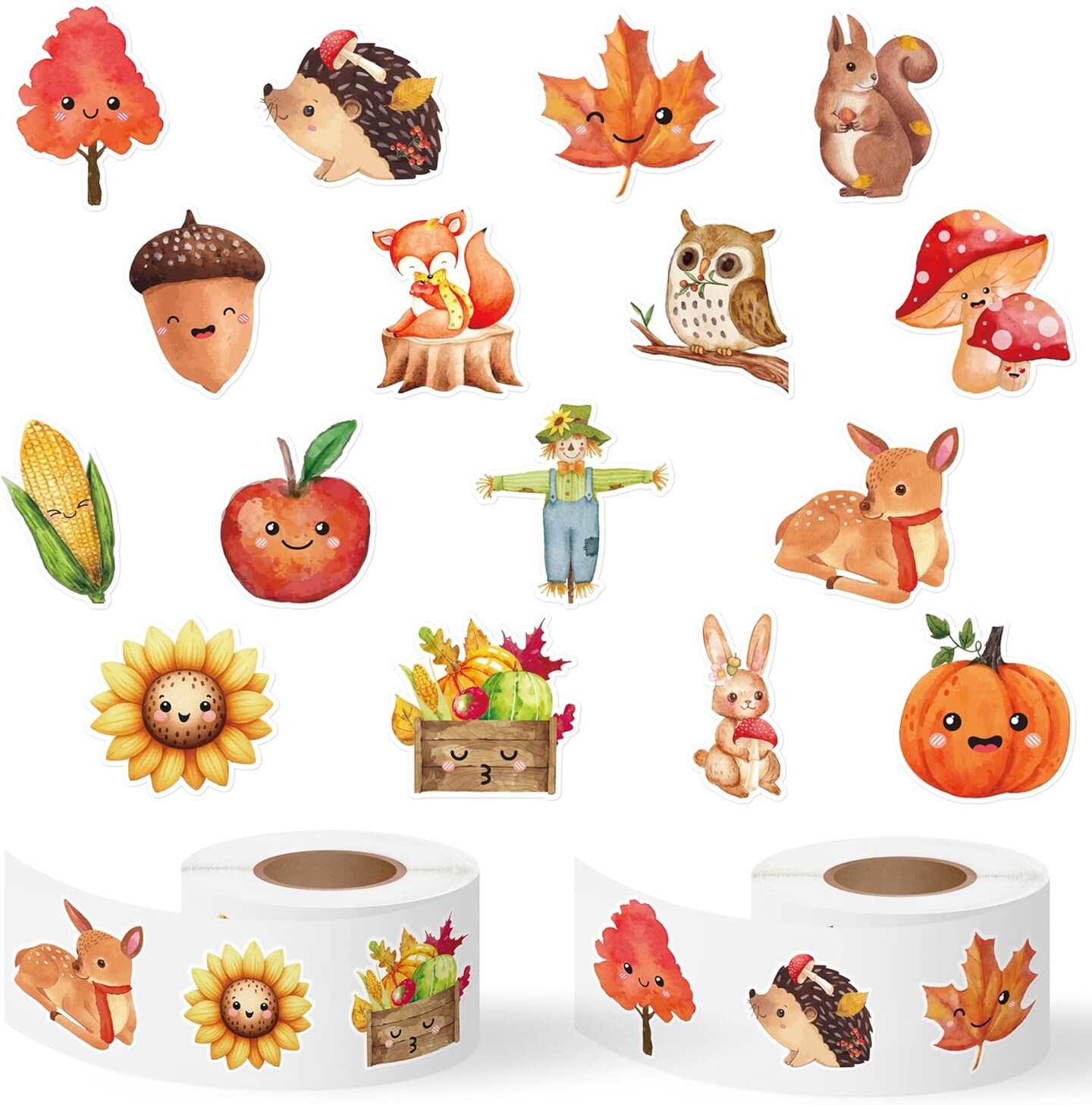 1000pcs Fall-Theme Watercolor Sticker Rolls (2 Rolls)