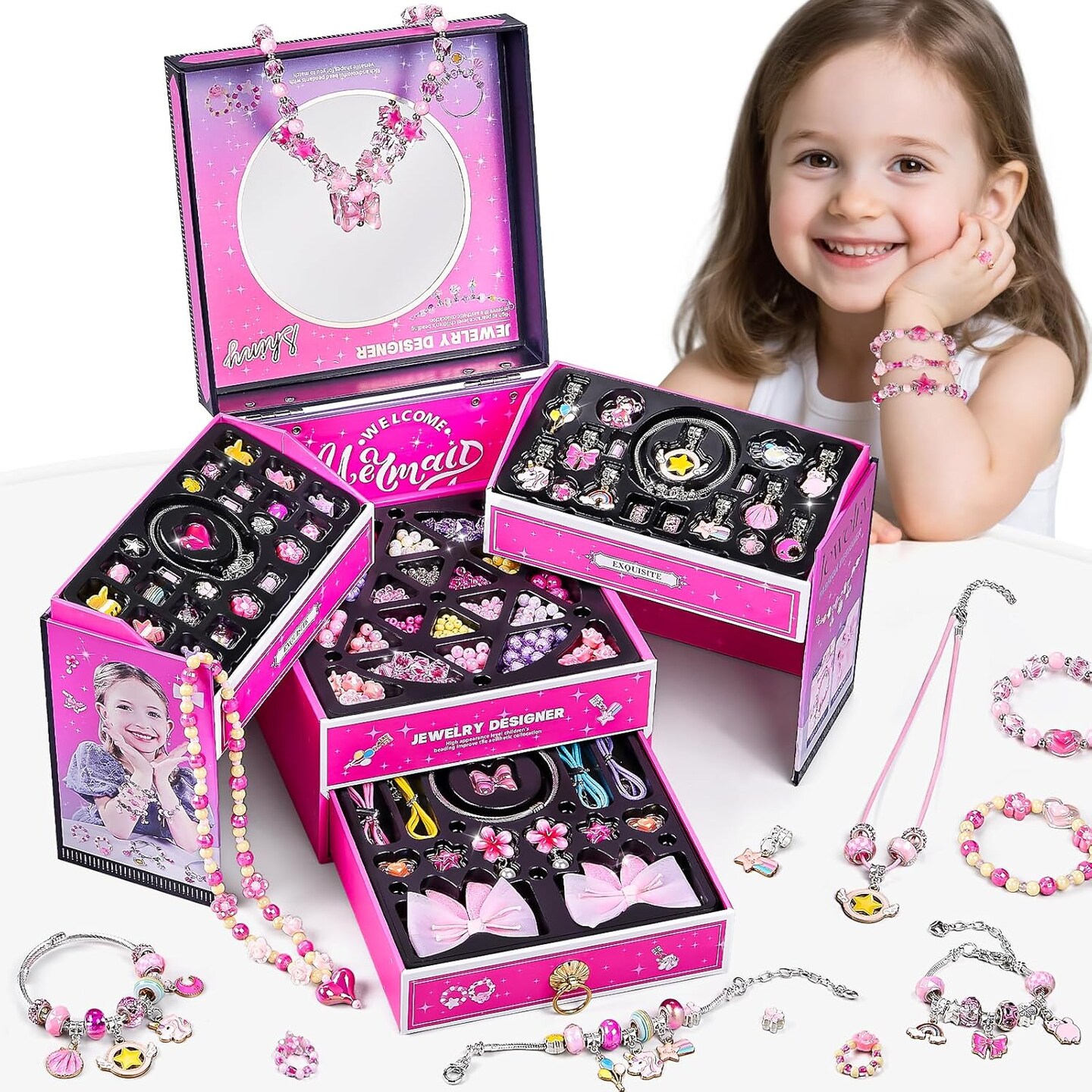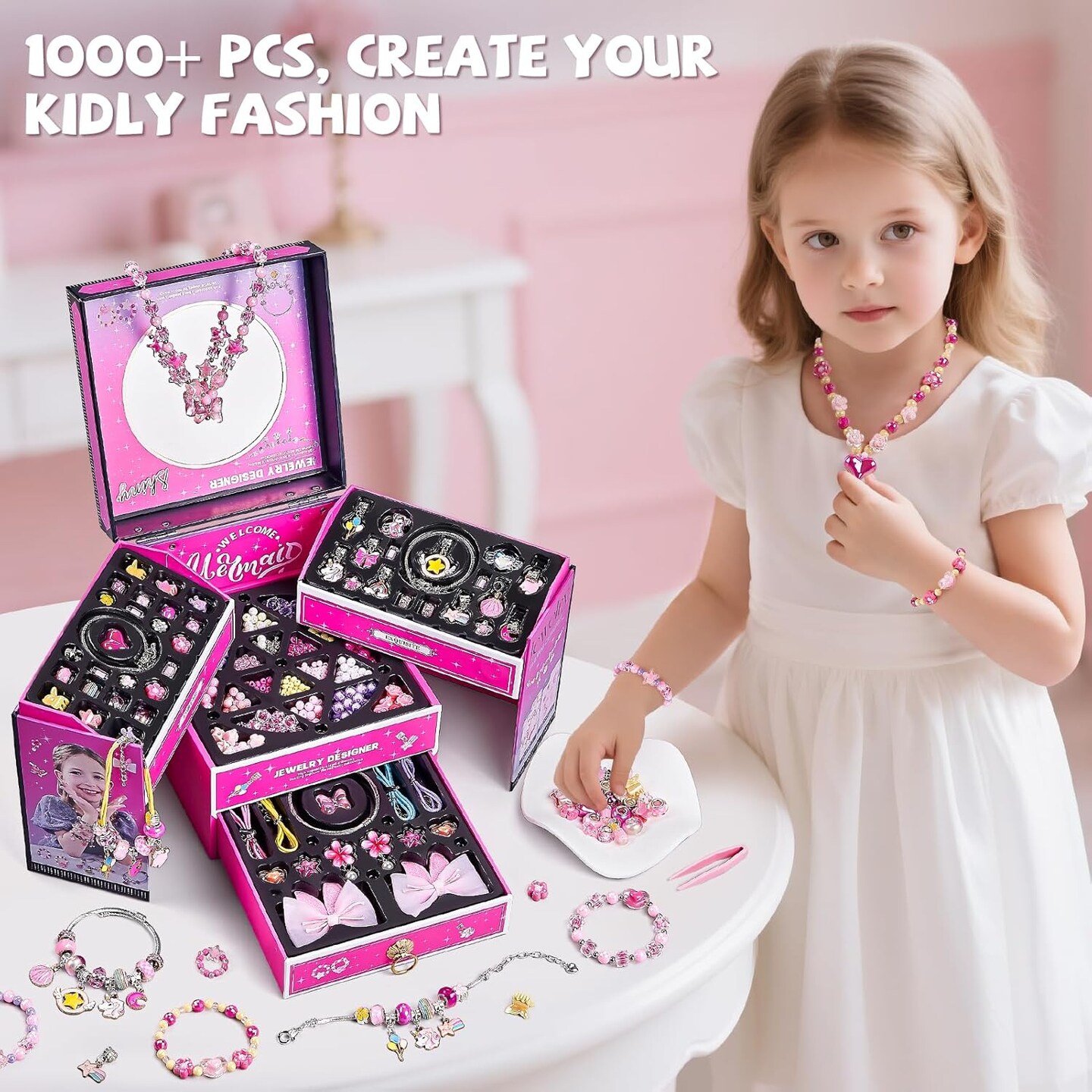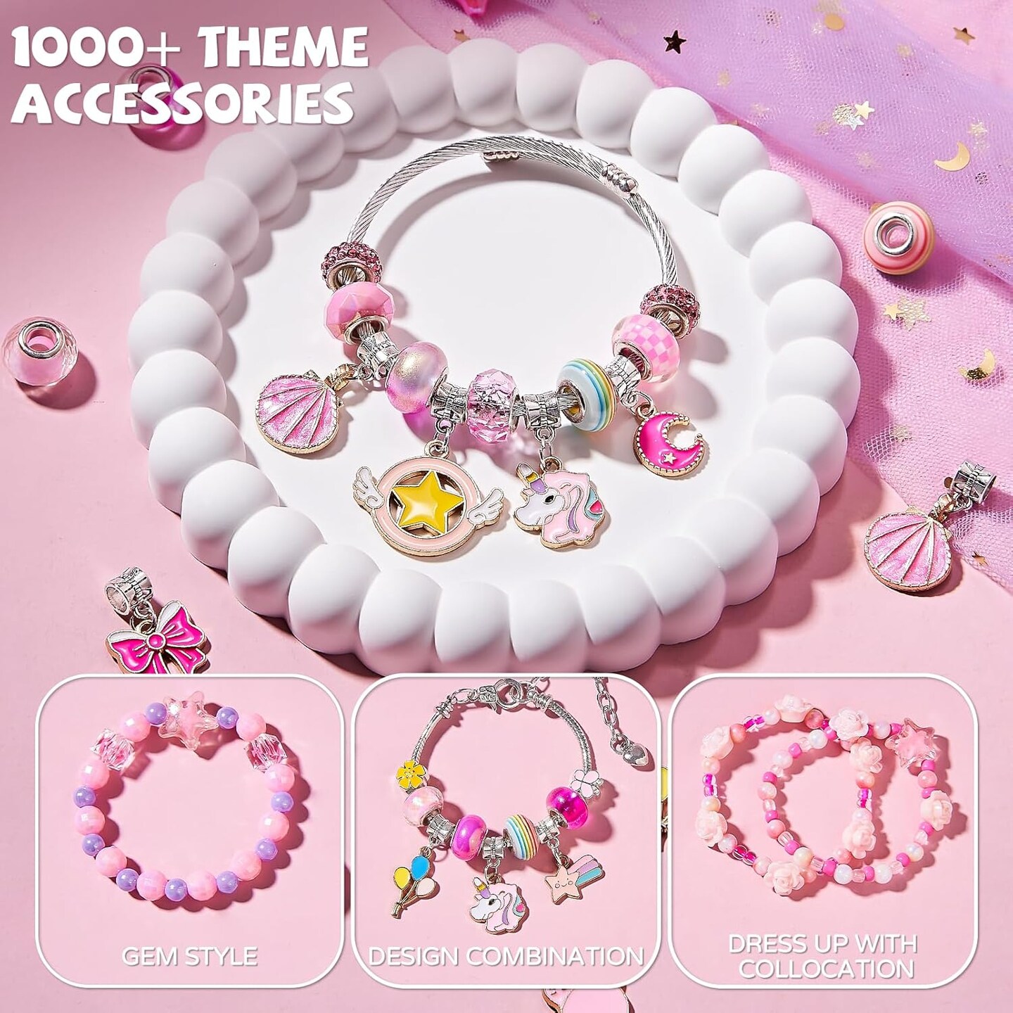 1000Pcs Pearl Beads for Bracelets Making -4mm 6mm White Pearl Beads with Gold Spacer Bead & Shell Jewelry for Bracelet Necklace DIY Craft Making Kit, Beach Theme Friendship Jewelry Making Kit