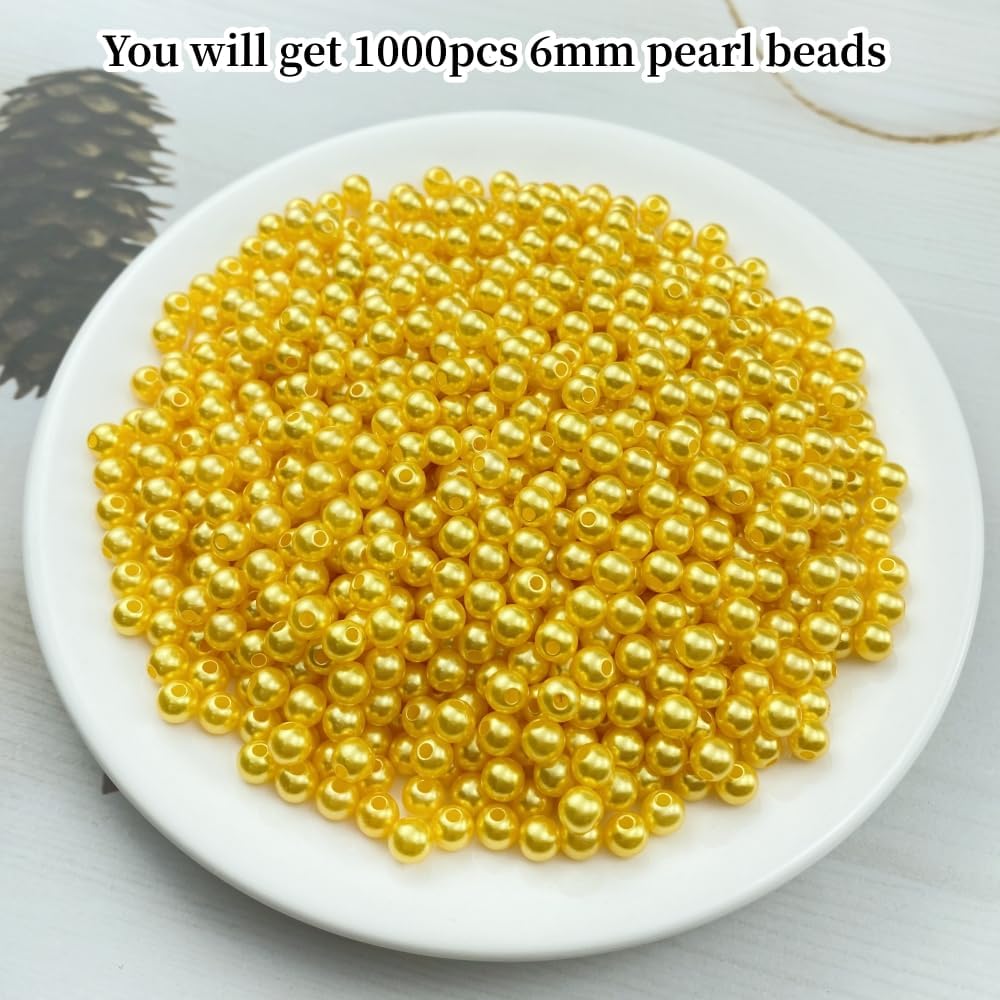 1000pcs Pearl Beads for Crafts 6mm Resin Pearl for Jewelry Making Round Bulk Pearls Beads with Hole for Necklaces Bracelets Earrings Making Jewelry Decoration(Gold Yellow)
