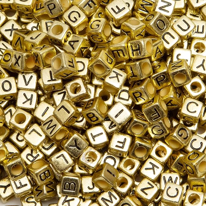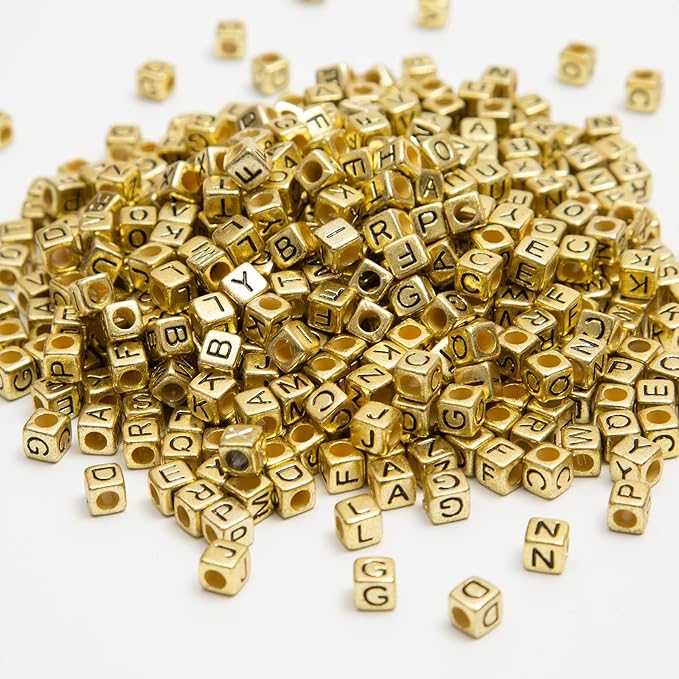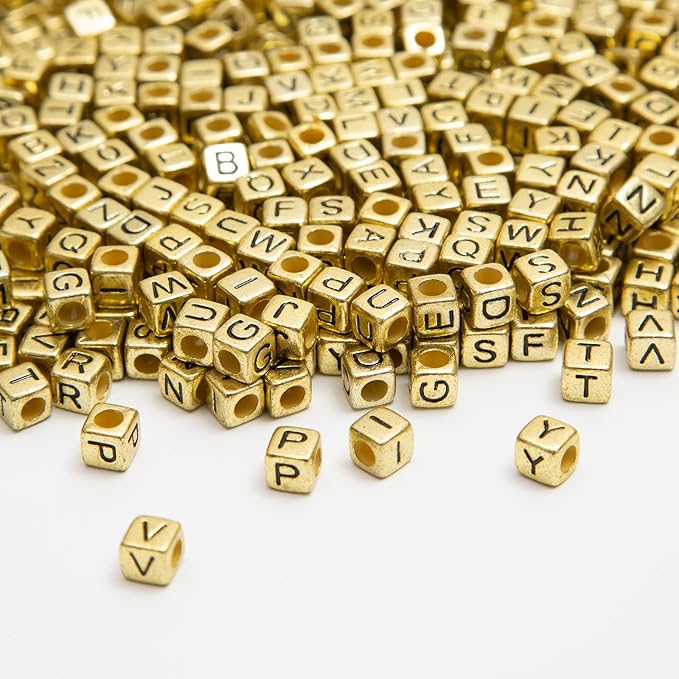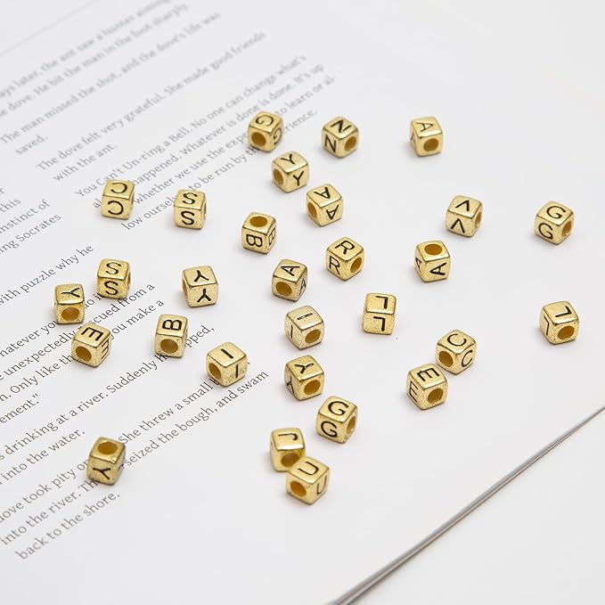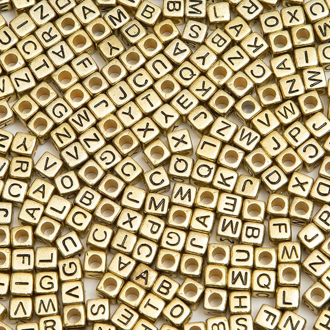 1000PCS Square Letter Beads for Bracelets – 6x6mm Gold Cube A–Z Alphabet Beads for Jewelry Making & Crafts