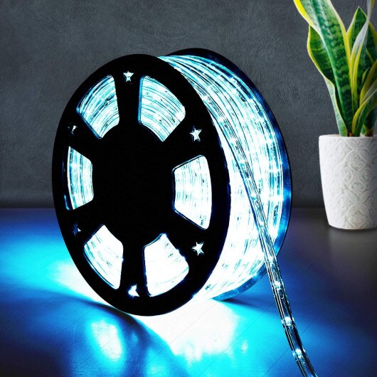 "100ft LED Rope Light, 11 Bulbs/Ft, PVC Tubing, Indoor/Outdoor, Flexible and Cuttable with Connectors