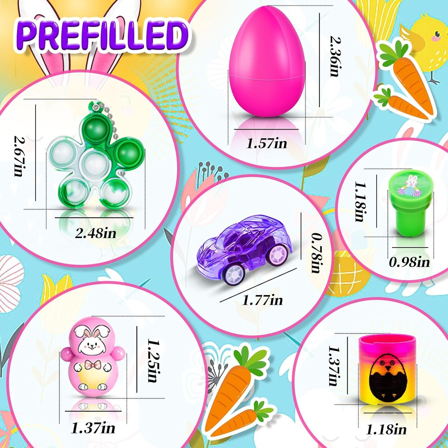 100Pack Prefilled Eggs with Toys Inside for Filling Specific Treats, Easter Theme Party Favor