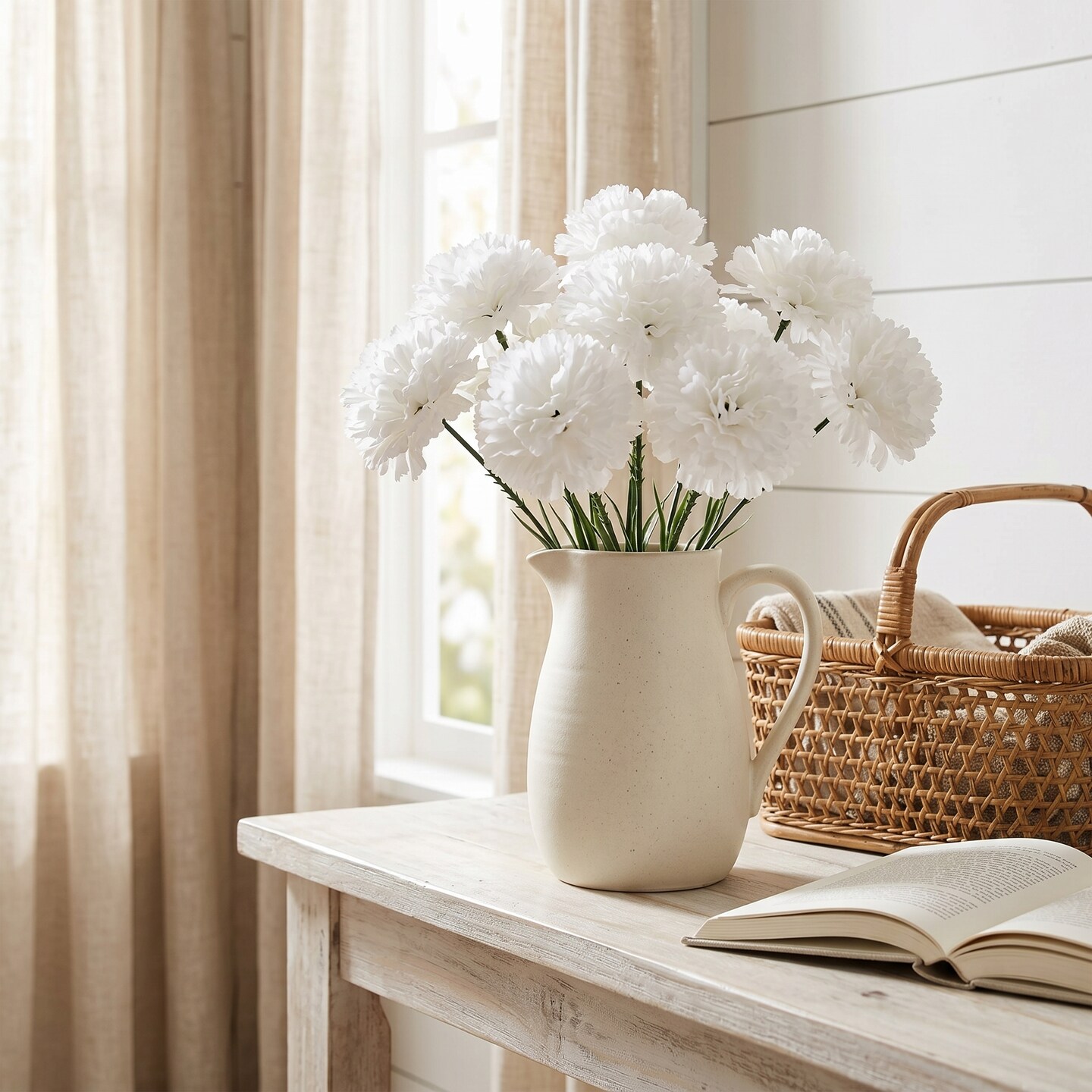 100-Pack: White Carnation Picks, 5" Stems, 3.5" Wide, Floral Home by Artificial Flowers