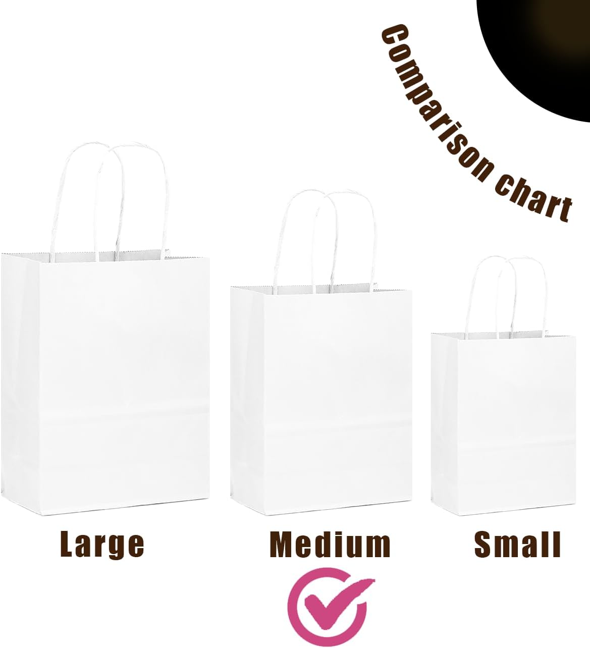 100-Packs White Paper Gift Bags with Handles 7.6"x4.75"x10.5" Medium Size Gift Bags Multiple Uses