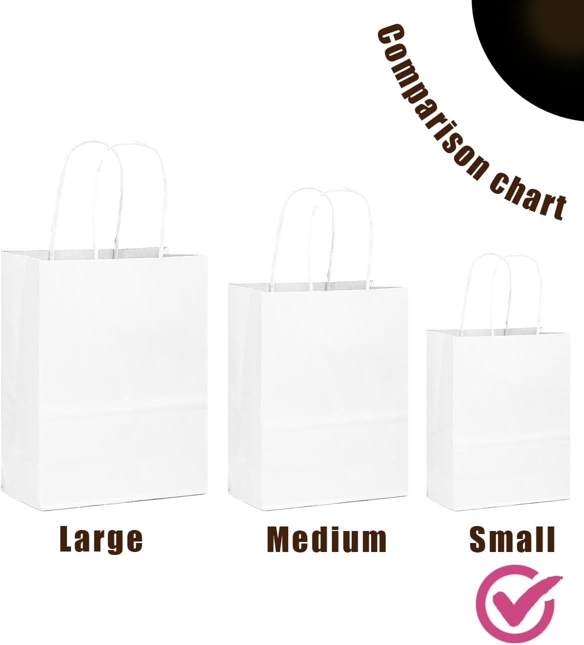 100-Packs White Paper Gift Bags with Handles 8.26"×6"×3.15" Small Size Gift Bags Multiple Uses