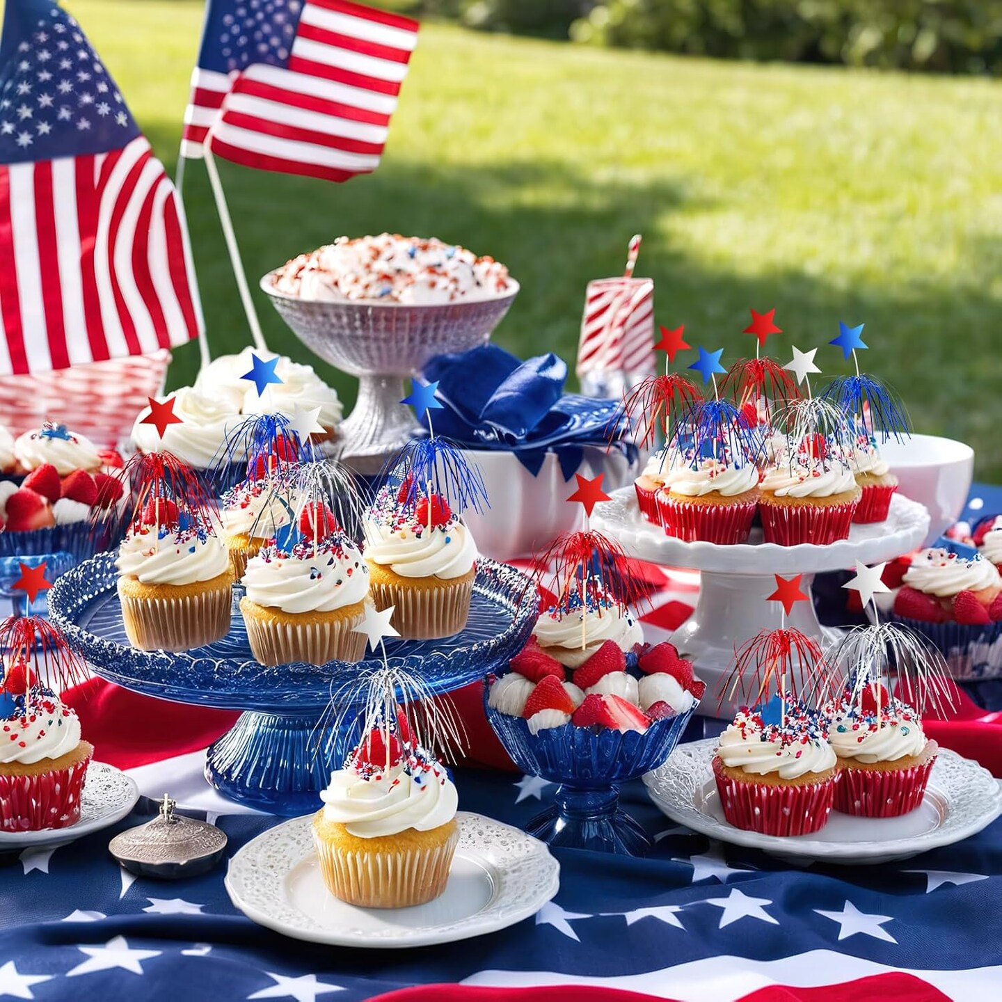 100Pcs 4th of July Cocktail Picks, Patriotic Red White Blue