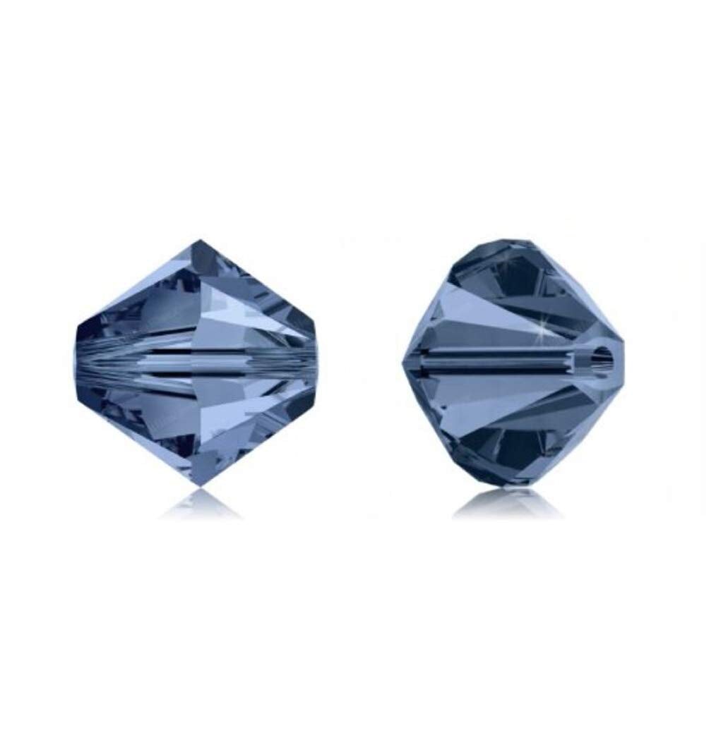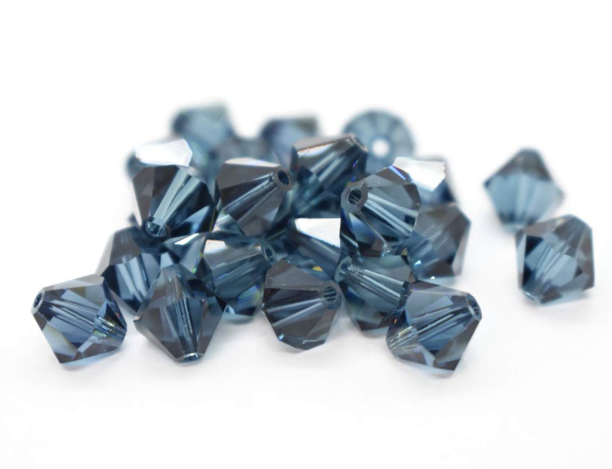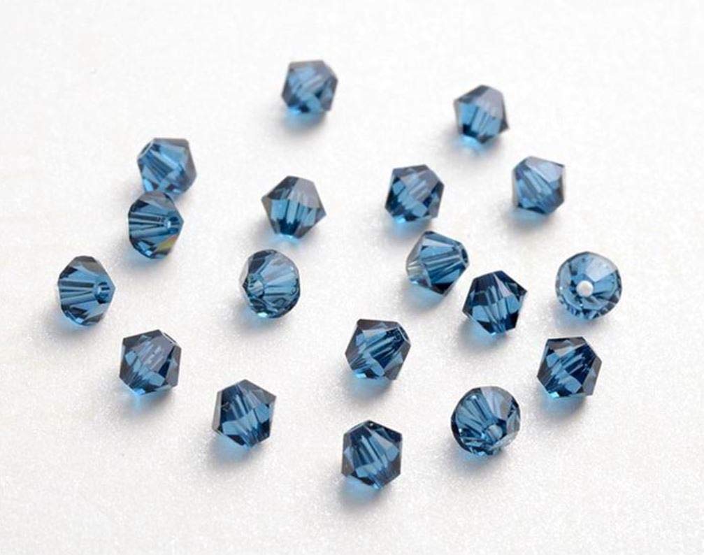 100pcs Authentic Preciosa 4mm (0.16 inch) Small Faceted Bicone Crystal Loose Beads Montana Blue Compatible with Swarovski 5301/5328 for DIY Jewelry Making Pre-B420