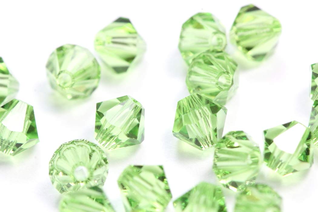 100pcs Authentic Preciosa 4mm (0.16 Inch) Small Faceted Bicone Crystal Loose Beads Peridot Green Compatible with Swarovski 5301/5328 for DIY Jewelry Making Pre-B416