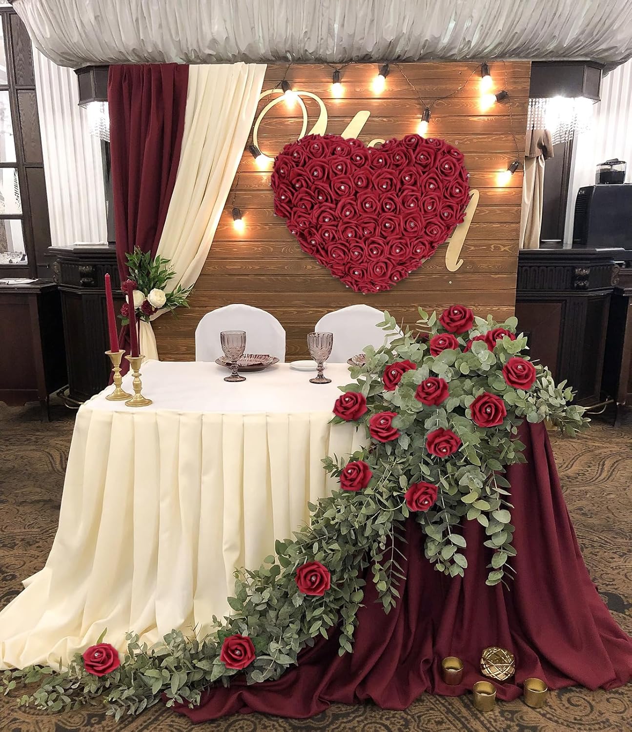 100PCS Burgundy Rose Artificial Flower Heads Bouquets