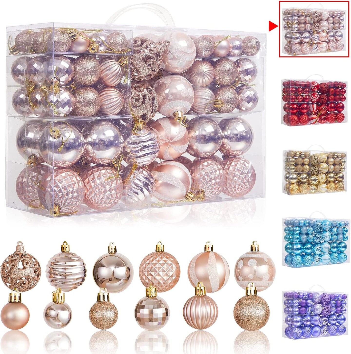 100Pcs Christmas Ball Ornaments Set (Rose Gold)