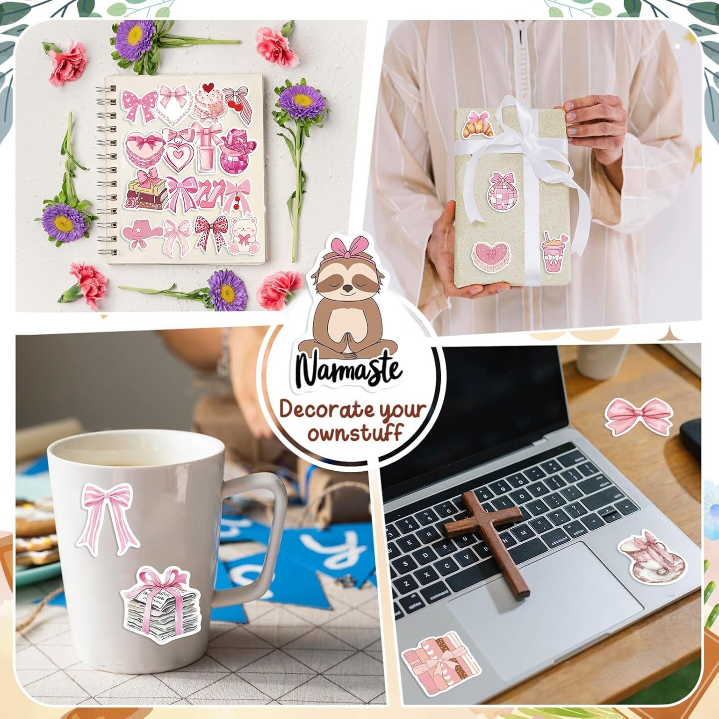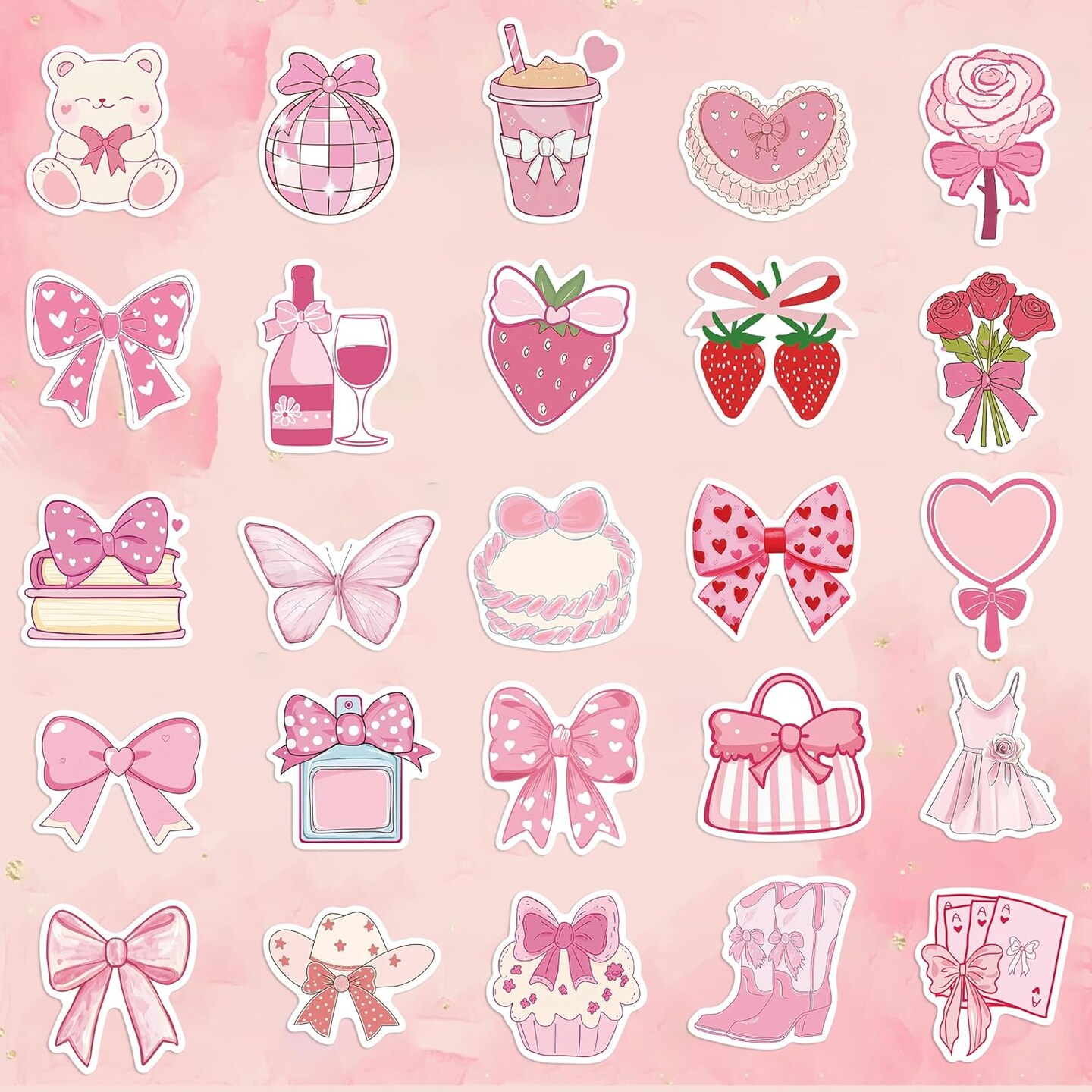 100PCS Coquette Stickers Pink Aesthetic Stickers Pack Cute Bow Tie Stickers for Girls Pink Sticker