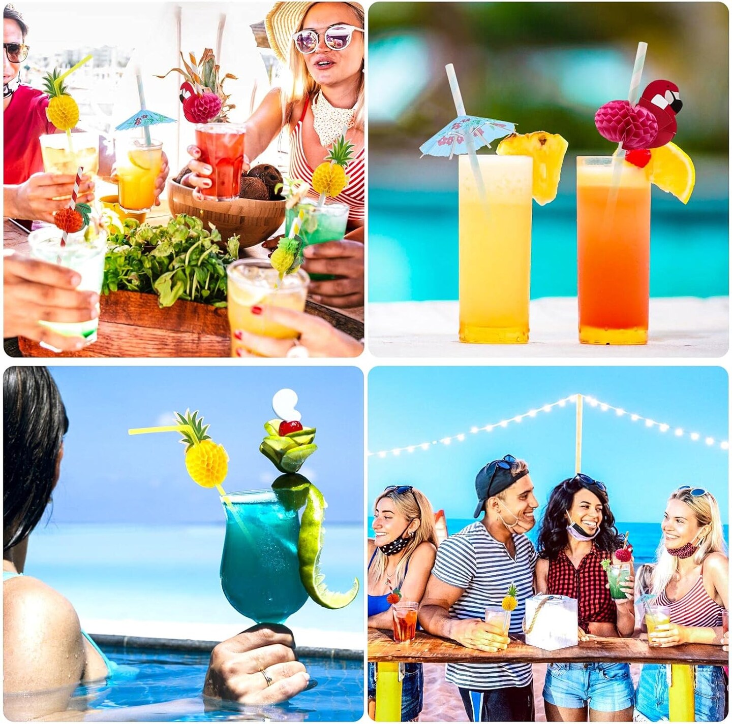 100PCS Flamingo Fruit Paper Straws,Disposable Plastic Drinking Straws,Tropical Hawaiian Beach Summer Pool Party Cocktail Decorations - Assorted Colors