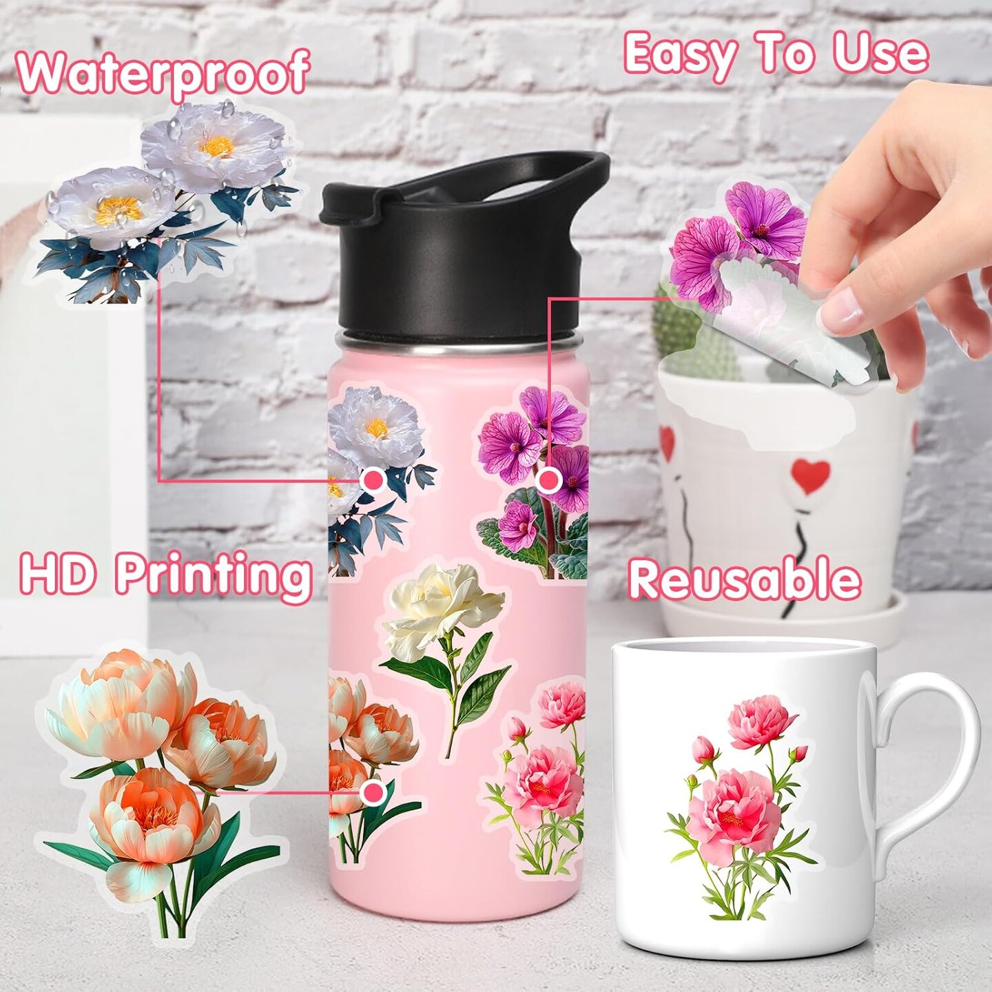 100pcs Flower Stickers for Scrapbooking (Flower)