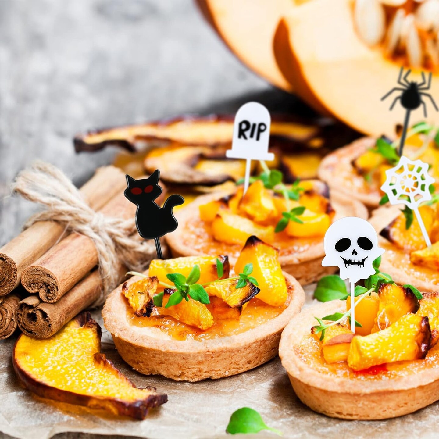100PCS Halloween Toothpicks for Food, Plastic Halloween Food Cocktail Appetizer Picks Cupcake Toppers for Halloween Baby Shower Birthday Wedding Party Cake Decorations