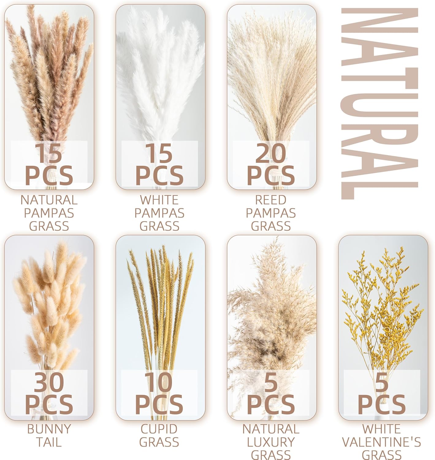 100PCS Natural Dried Pampas Grass Boho Home Decor Bouquet Phragmites Dried Flowers Bouquet for Wedding Floral Arrangements Home Decorations