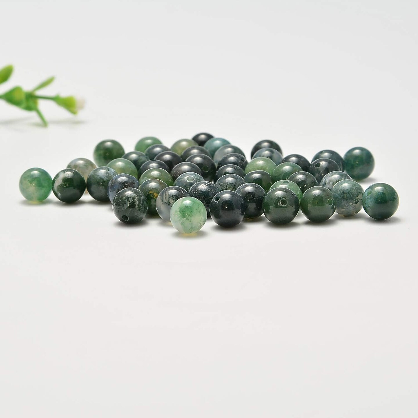 100pcs Original Natural Stone Beads Gemstone Round Loose Beads 6mm 8mm 10mm (Green Moss Agate, 6mm 100Beads)