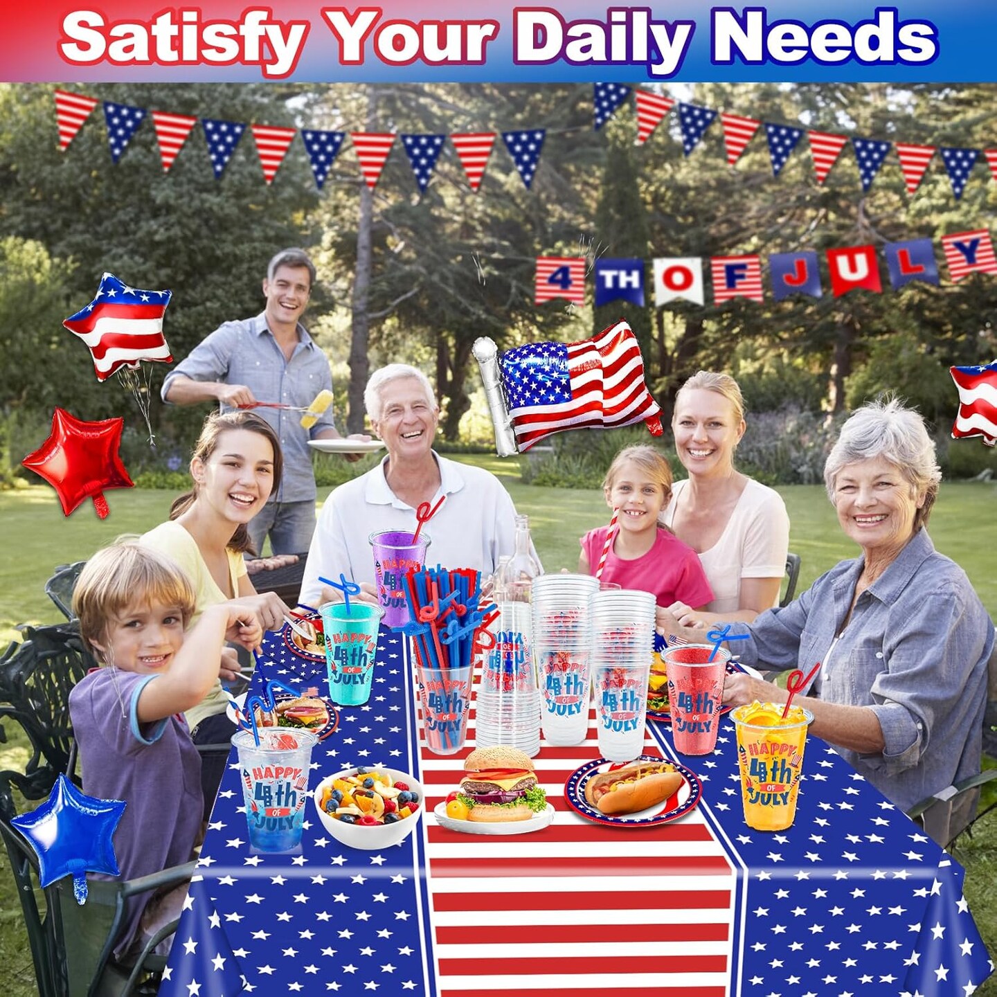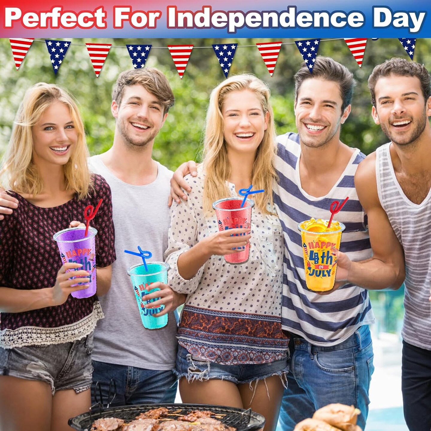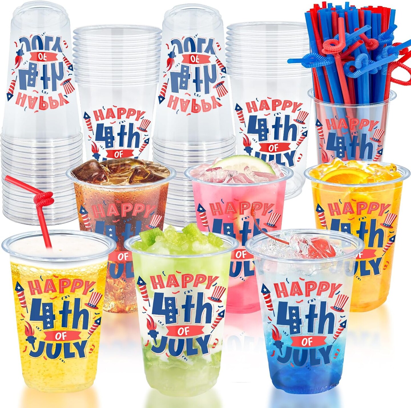 100Pcs USA 250th Anniversary 4th of July Decorations Patriotic Party Supplies, 50Pcs 16oz 4th of July Party Cups Patriotic Disposable Plastic Cups 50Pcs Red Blue Straws Independence Day Memorial Day