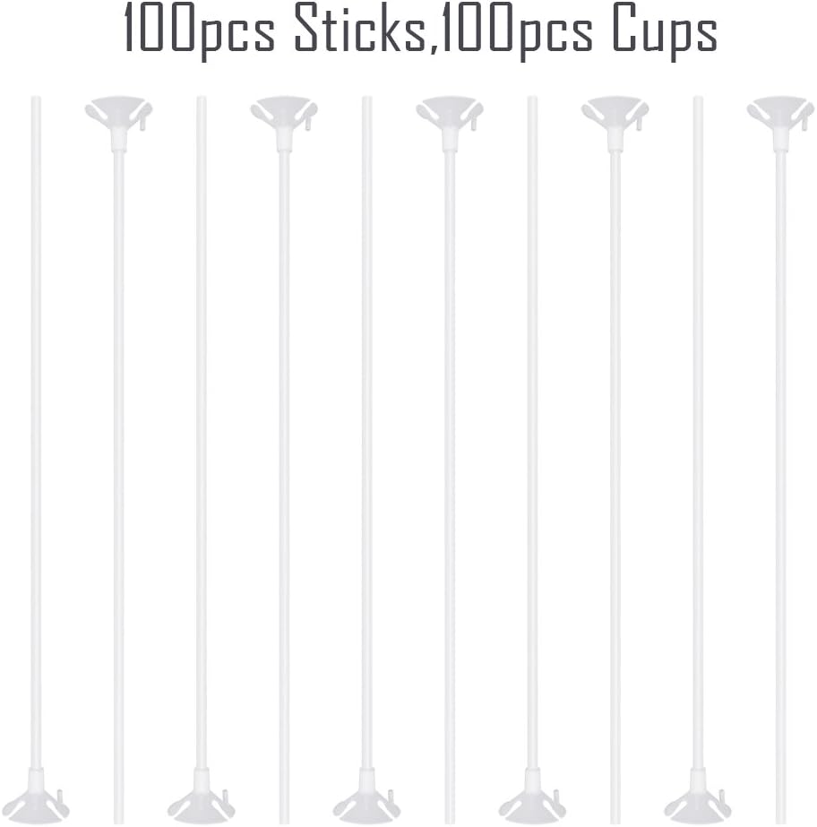 100pcs White Balloon Sticks with Holders & Cups – Upgraded Set for Party, Wedding & Holiday Decor