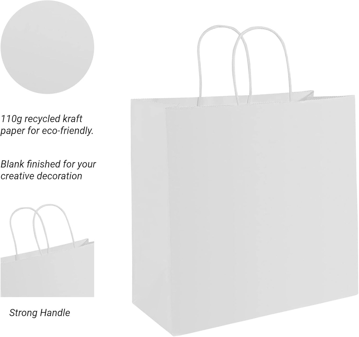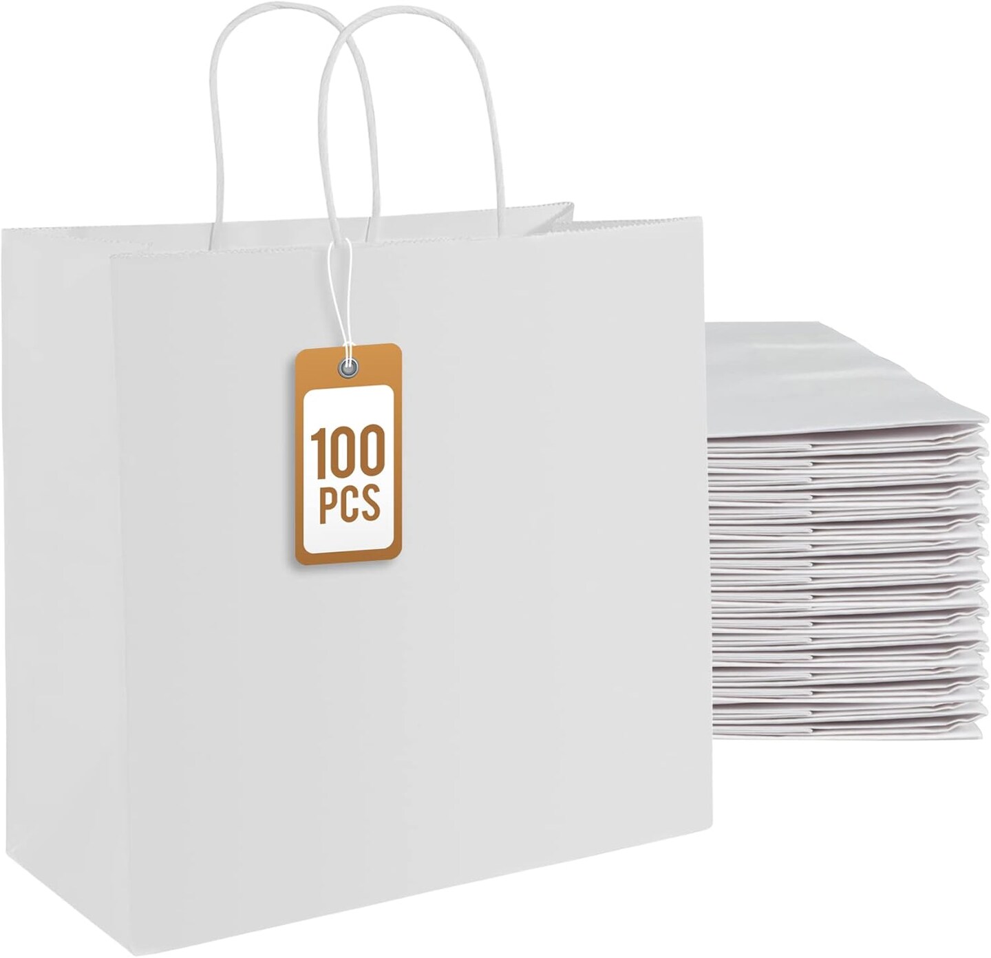100Pcs White Paper Bags with Handles, Large 11x6x11 Inch Kraft Shopping Bags for Retail, Gift Packaging, Parties, Weddings, Birthdays, Baking
