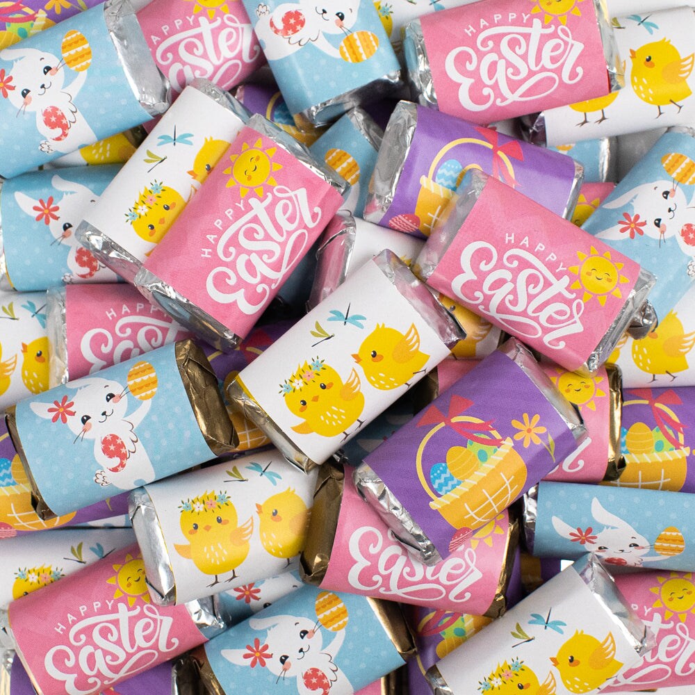 102 Pcs Easter Candy Favors Miniatures Chocolate - No Assembly Required - Bunny, Eggs & Chicks