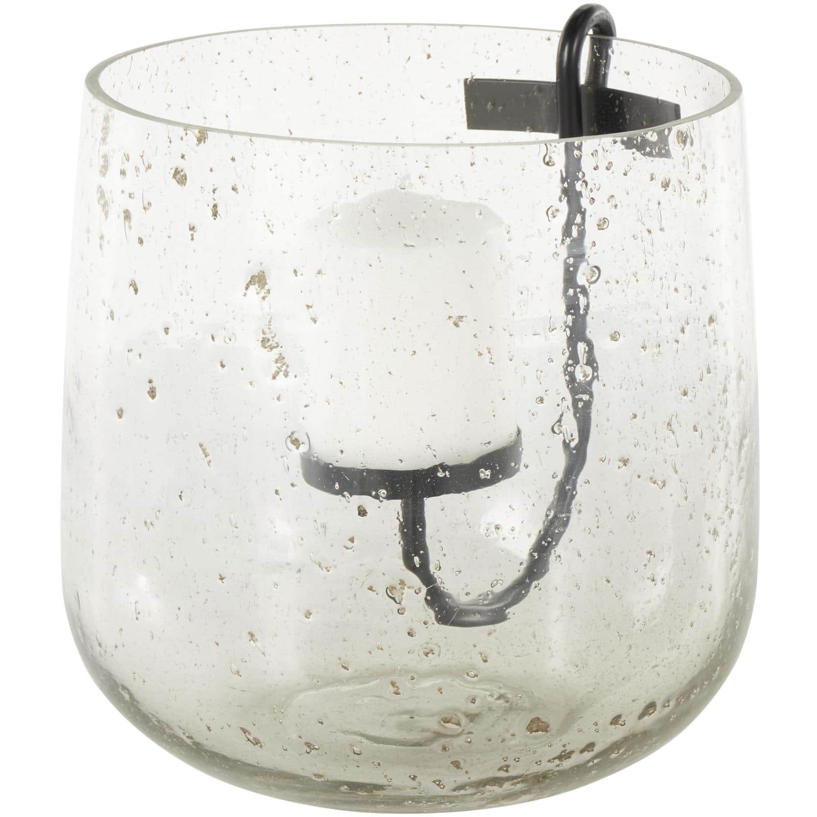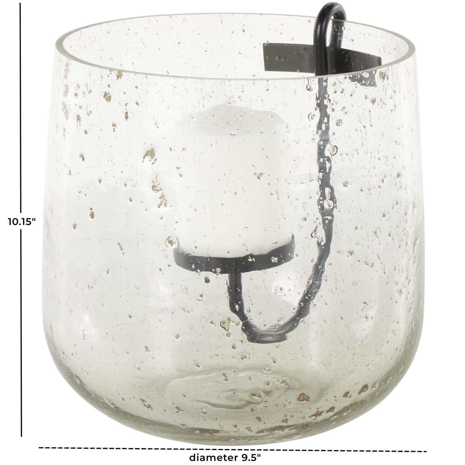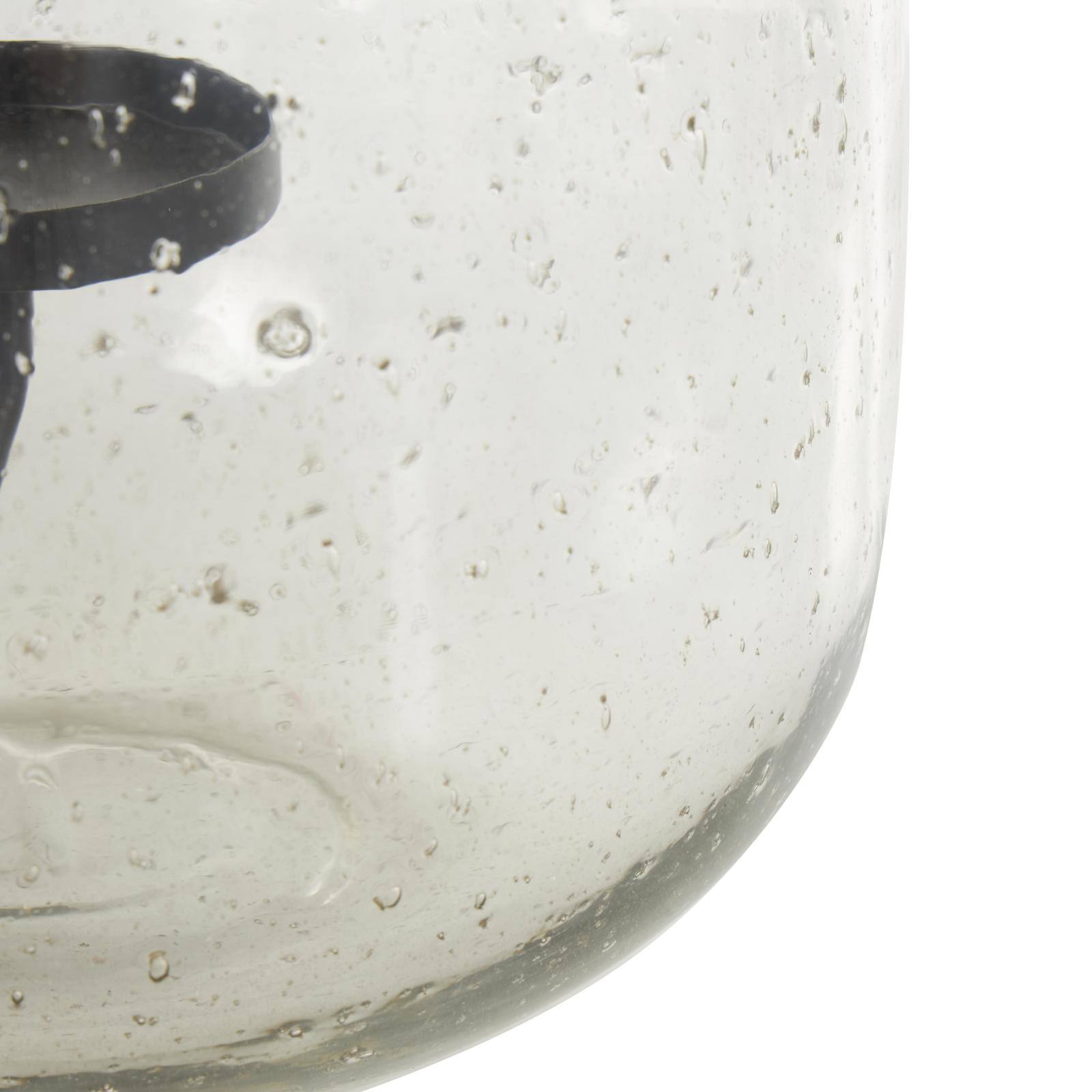 10.25" Clear Glass Candle Holder with Black Metal Accents and Brown Speckles