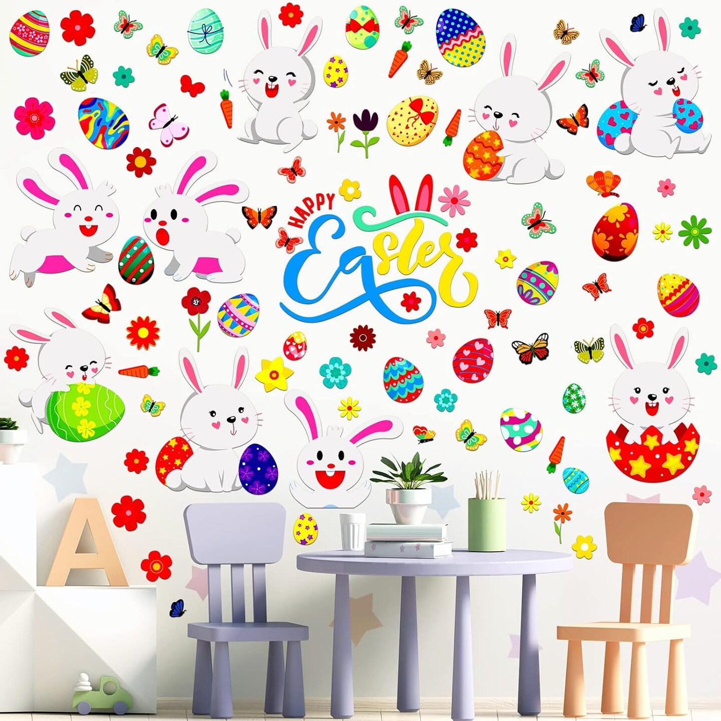 103-Piece Easter Wall Decals – 6 Sheets of Bunnies & Eggs Stickers for Bedroom, Living Room & Home Decor