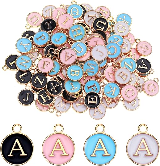 104 PCS Letter Charms – Double-Sided Metal Alphabet A–Z for DIY Necklaces & Jewelry Making