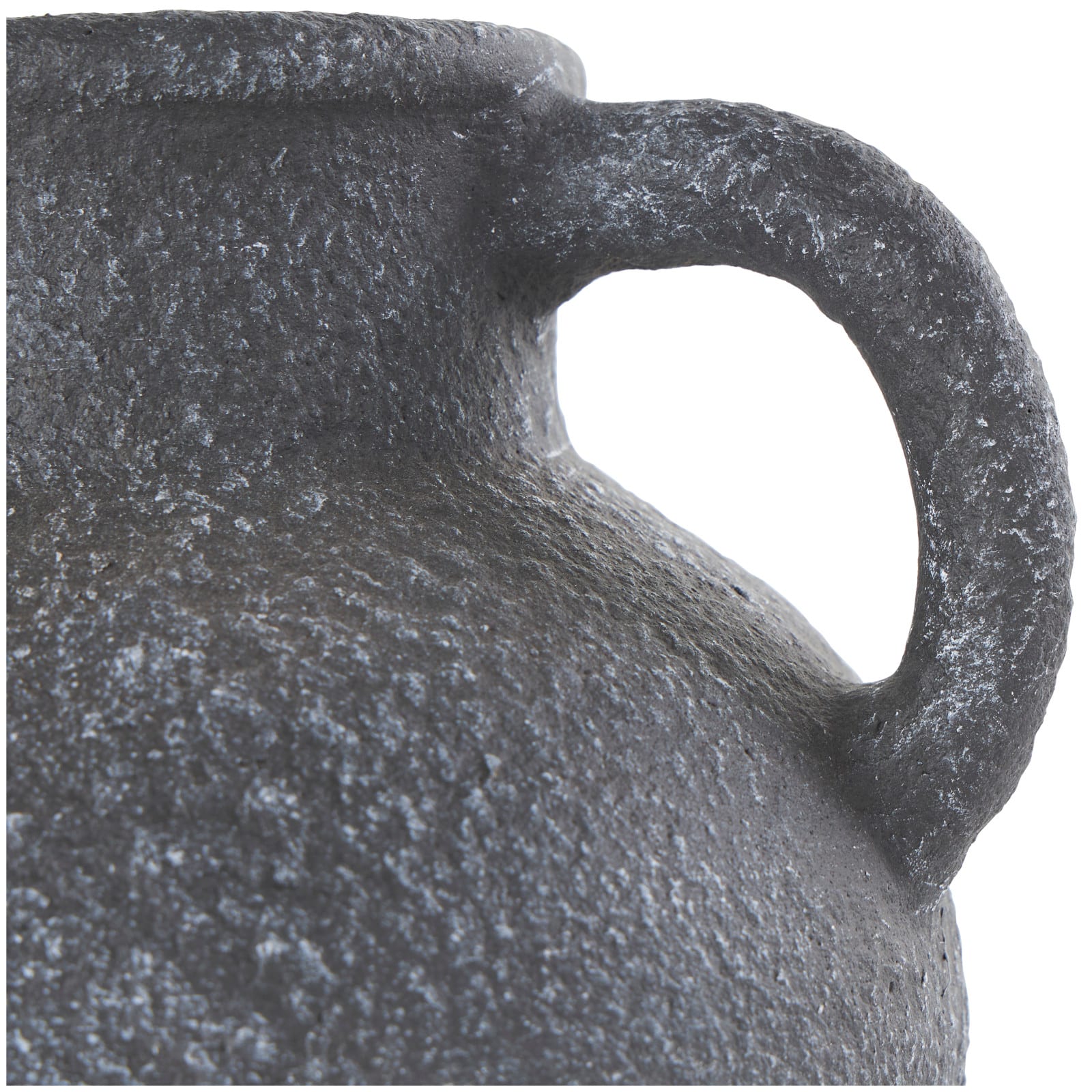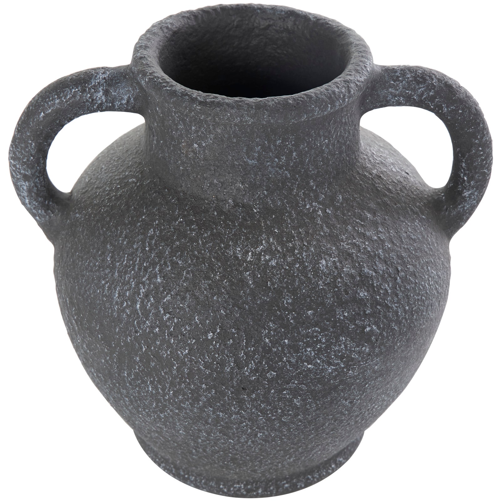 10.5" Black Ceramic Textured Whitewashed Vase with Handles