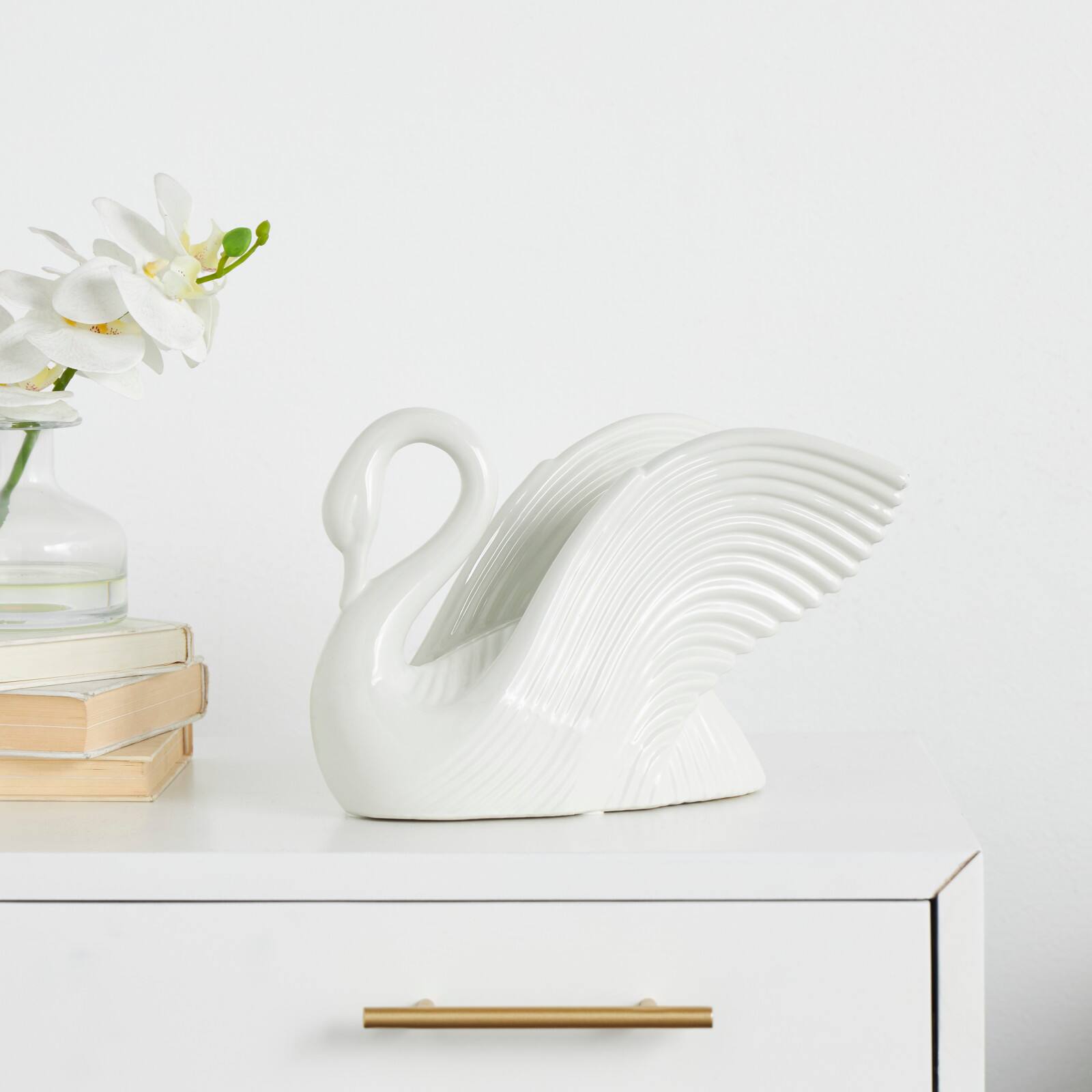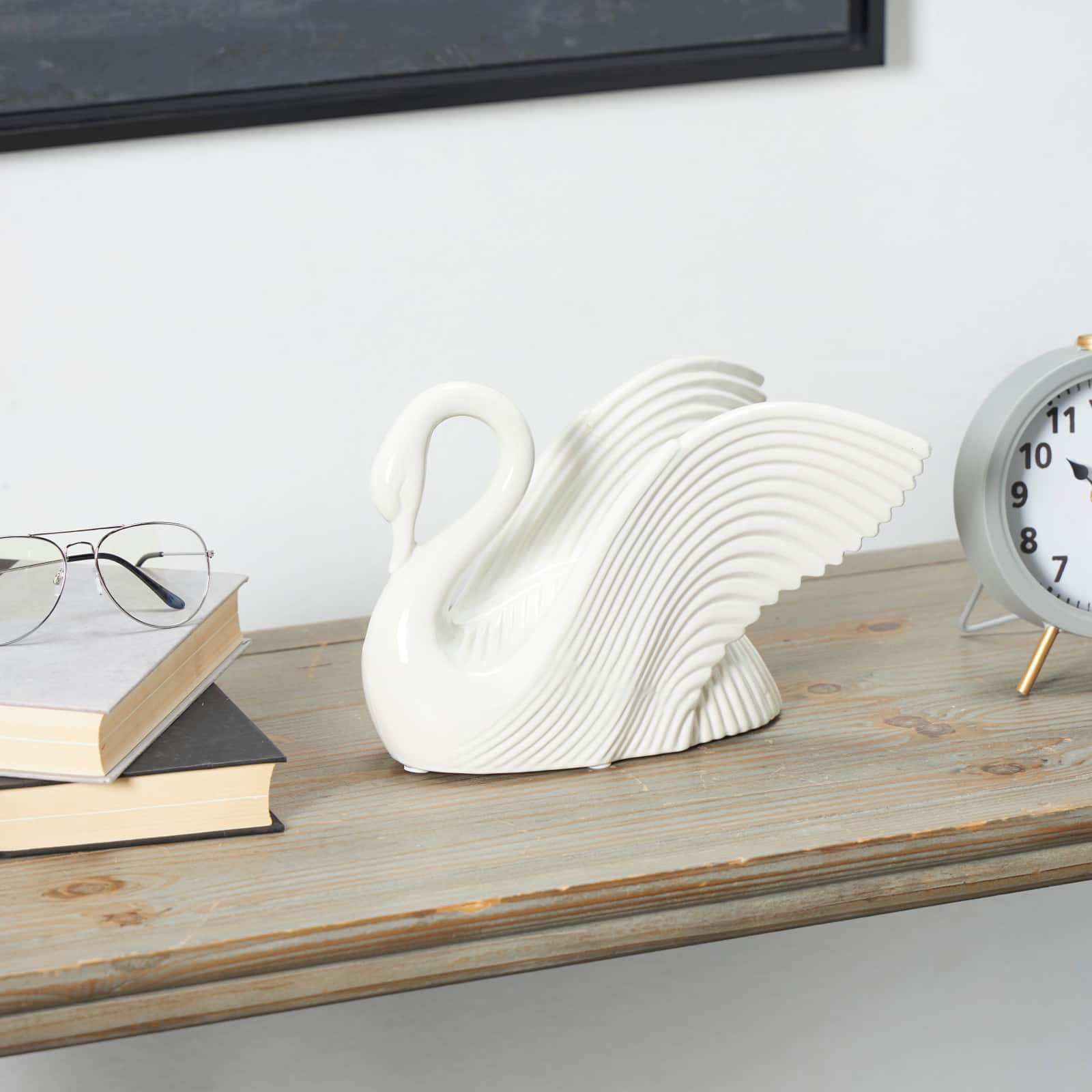 10.5" Ceramic Swan with Textured Grooves Sculpture